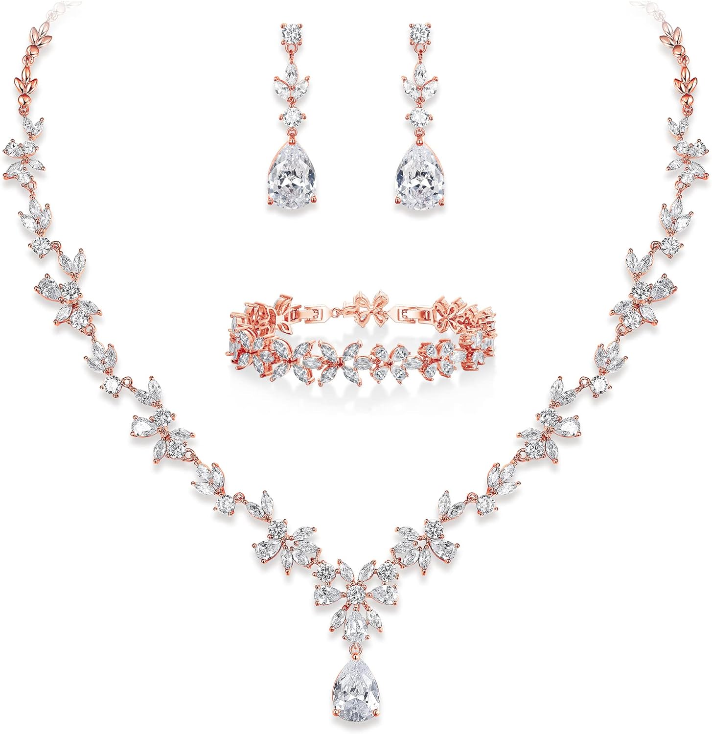 - If you are going out to a party or banquet, this birthstone bridal wedding dangle earrings necklace bracelet set is the perfect accessory that will enhance your outfit. With a fabulous water drop and flower CZ design and solid construction. It features sparkly CZs which will make a timeless accessory to any jewelry collection. This wedding jewelry set can be worn with classy casual or formal attire.