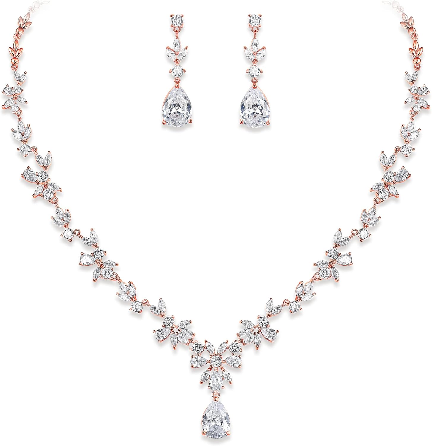 - If you are going out to a party or banquet, This birthstone bridal wedding dangle earrings necklace set is the perfect accessory that will enhance your outfit. With a fabulous water drop and flower CZ design and solid construction. It features sparkly CZs which will make a timeless accessory to any jewelry collection. This wedding jewelry set can be worn with classy casual or formal attire.