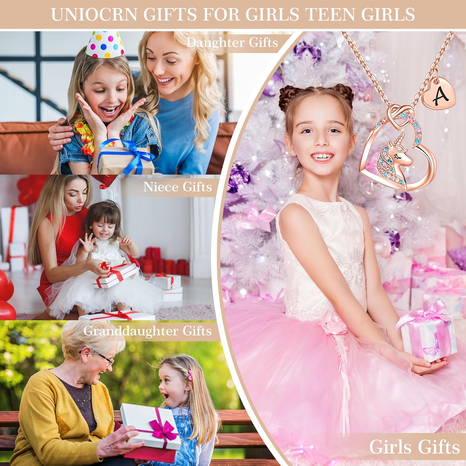 Hidepoo Stocking Stuffers for Teen Girls Kids - Colorful CZ Heart Pendant Initial Unicorn Necklaces for Girl Jewelry Birthday Gift Christmas Gifts for Grandkids Girls Kid
