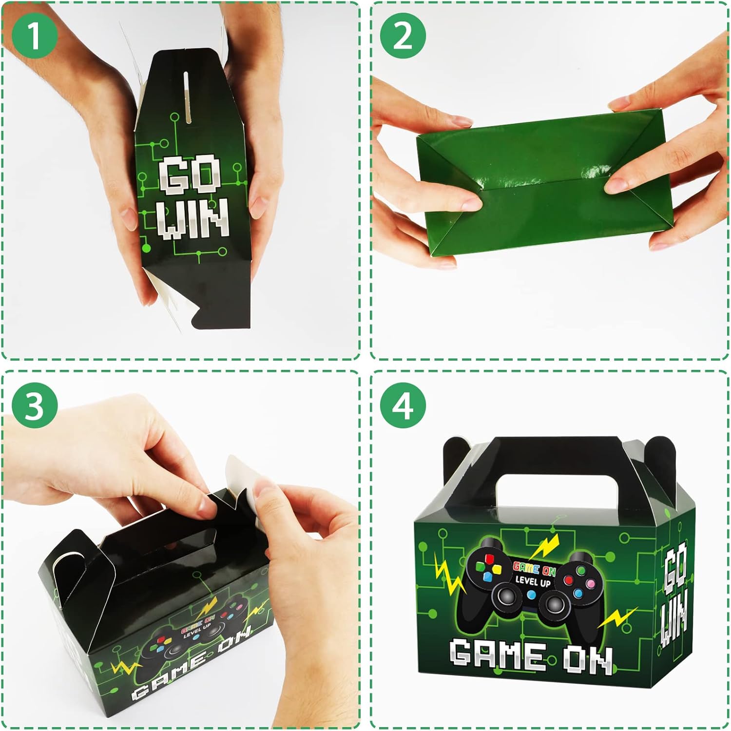 - What will you get: there are 4 styles of video game gift boxes, 6 of each style, 24 in total. These colorful paper boxes can be used as party gift packaging boxes, or you can put party snacks or souvenirs into the boxes to give to guests, enough to meet your various party needs