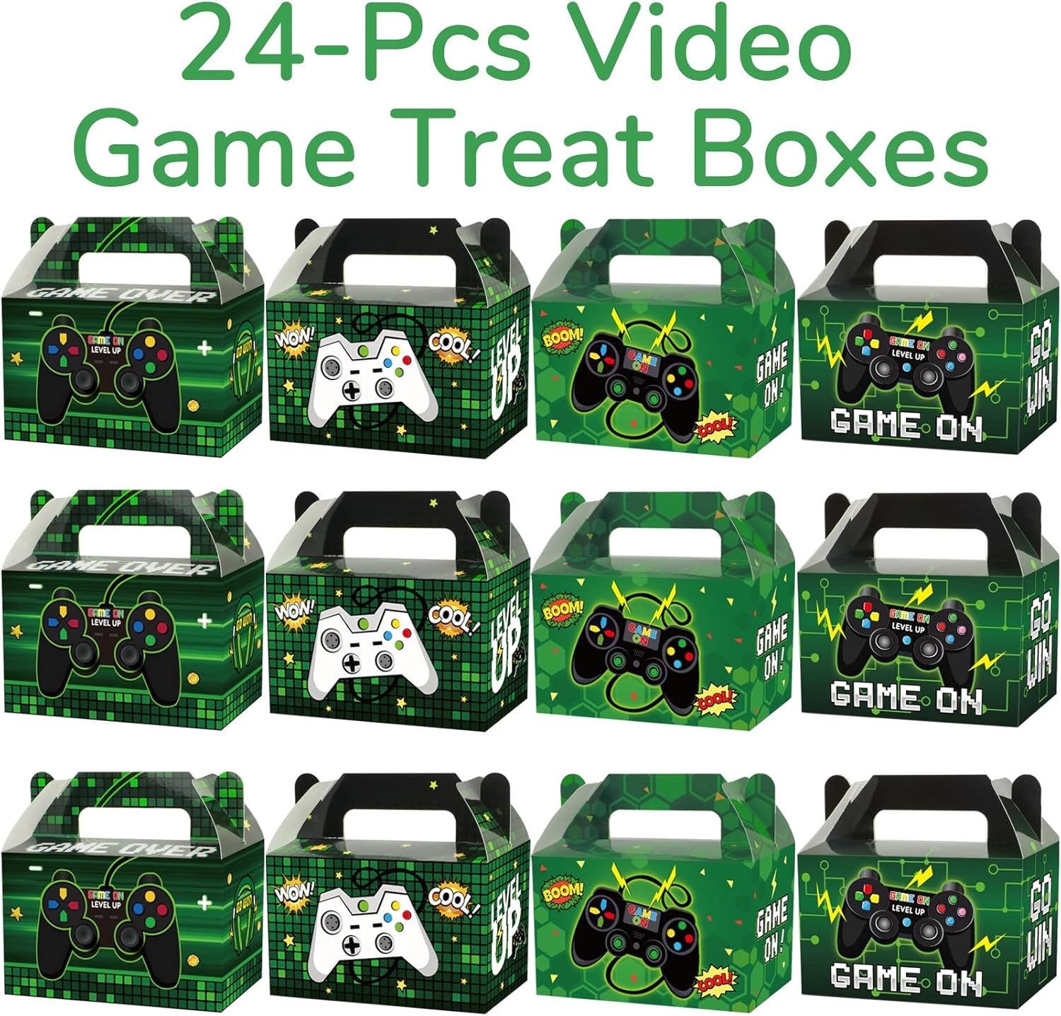 24 Pack Video Game Party Boxes Gamer Party Favor Candy Treat Bags Gaming Birthday Goodies Valentine's Day Gift Boxes for Kids Birthday Baby Shower Party Decorations Supplies