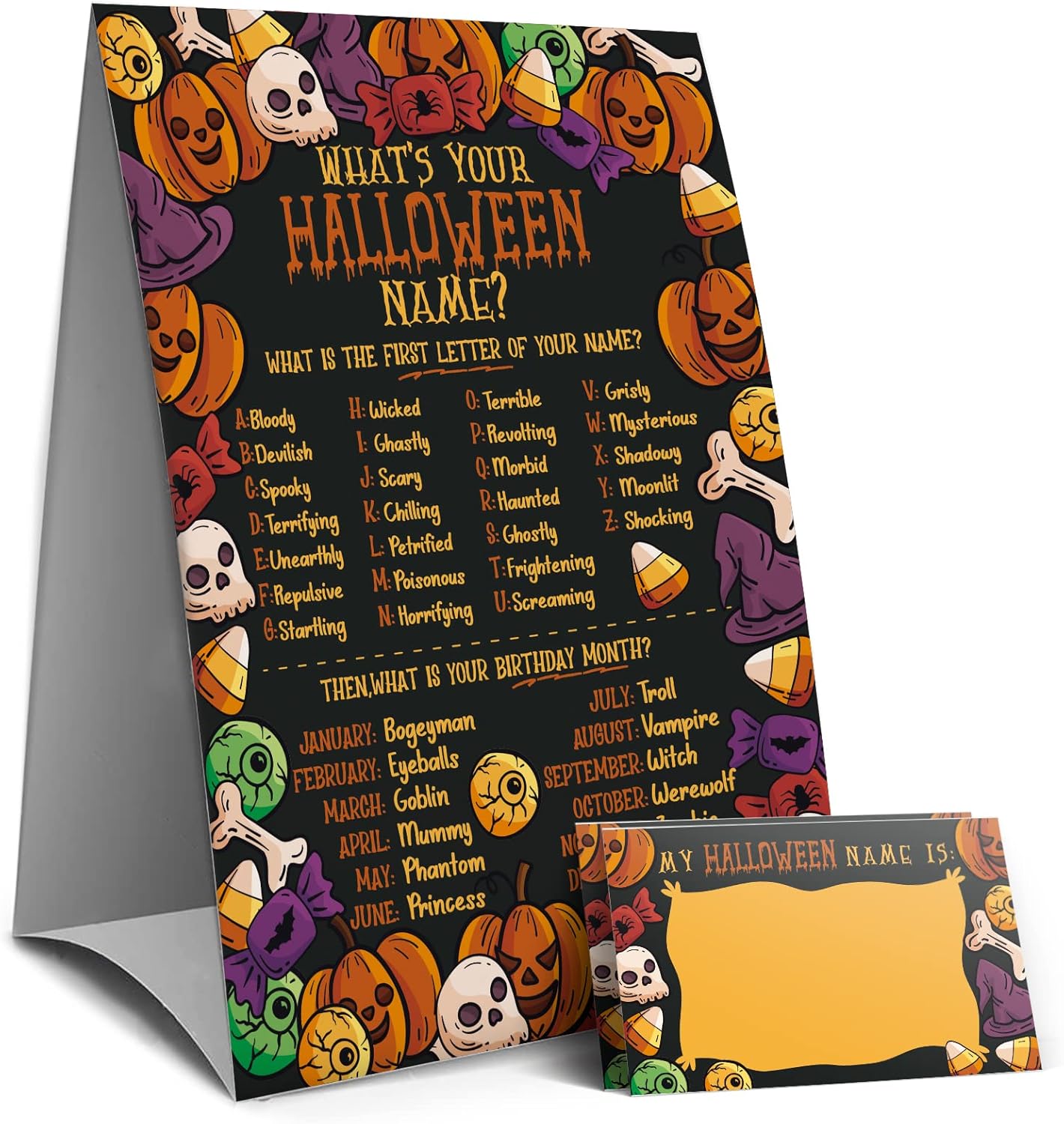 Halloween Games Sign - What's Your Halloween Name Game, Halloween Games and Activities for Family, Fall Party Games(9WN)