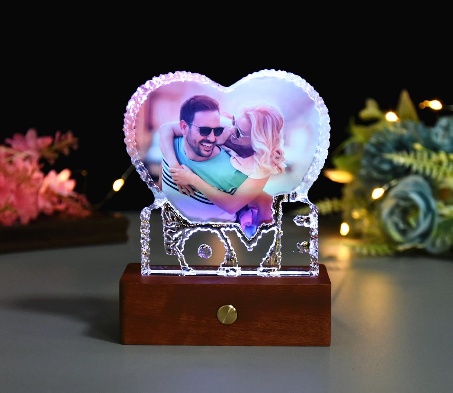 FANF&YKPY Personalized Crystal Custom Color Pictures - Heart-shaped Crystal Photo Frame, Birthdays, gift for her, Wedding Gifts, for Girlfriends, Husbands,Wife,Friends,Parents