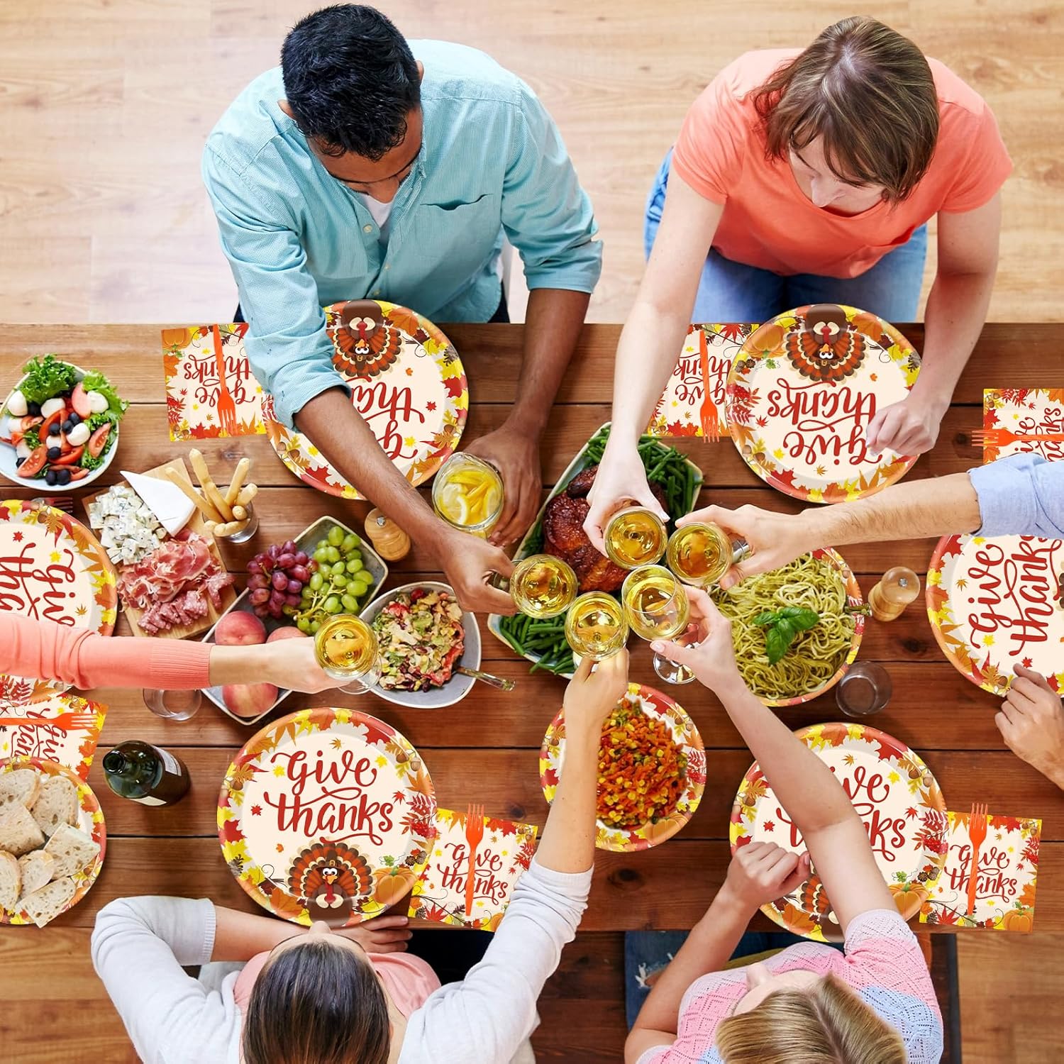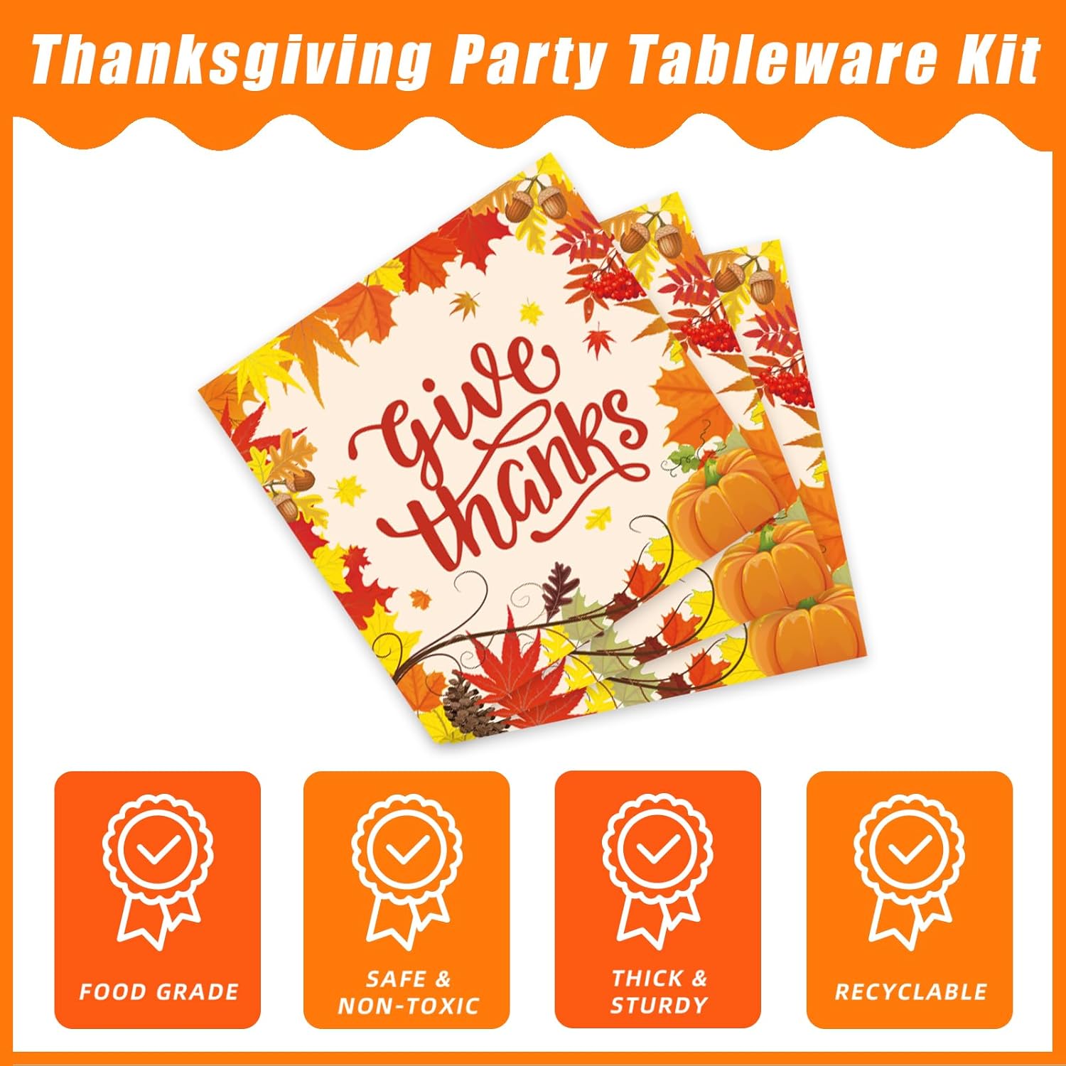 - HAPPY THANKSGIVING ELEMENTS - It's fall y'all! This thanksgiving plate and napkin set are inspired by fall pumpkin, turkey, and autumn maple leaves, and it features a golden "GIVE THANKS" headline. Hold a wonderful fall-theme party or birthday party for your family, and create a festive atmosphere