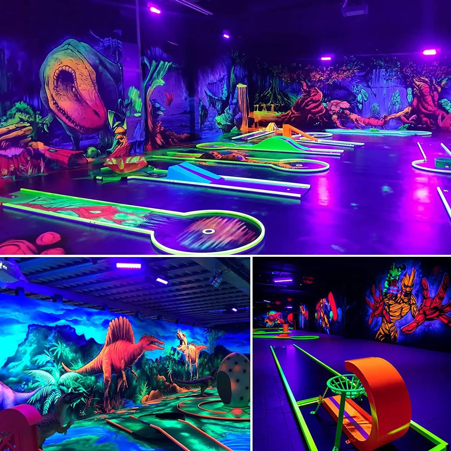 - 【POWERFUL 3 PACK BLACK LIGHTS】Each 100W blacklight with high-quality LED beads and 120-degree beam angle, can realize wide-angle illumination, provide a fantastic and amazing experience for you.fit nicely in a capacious dance floor, living room, yard, or any other party spot