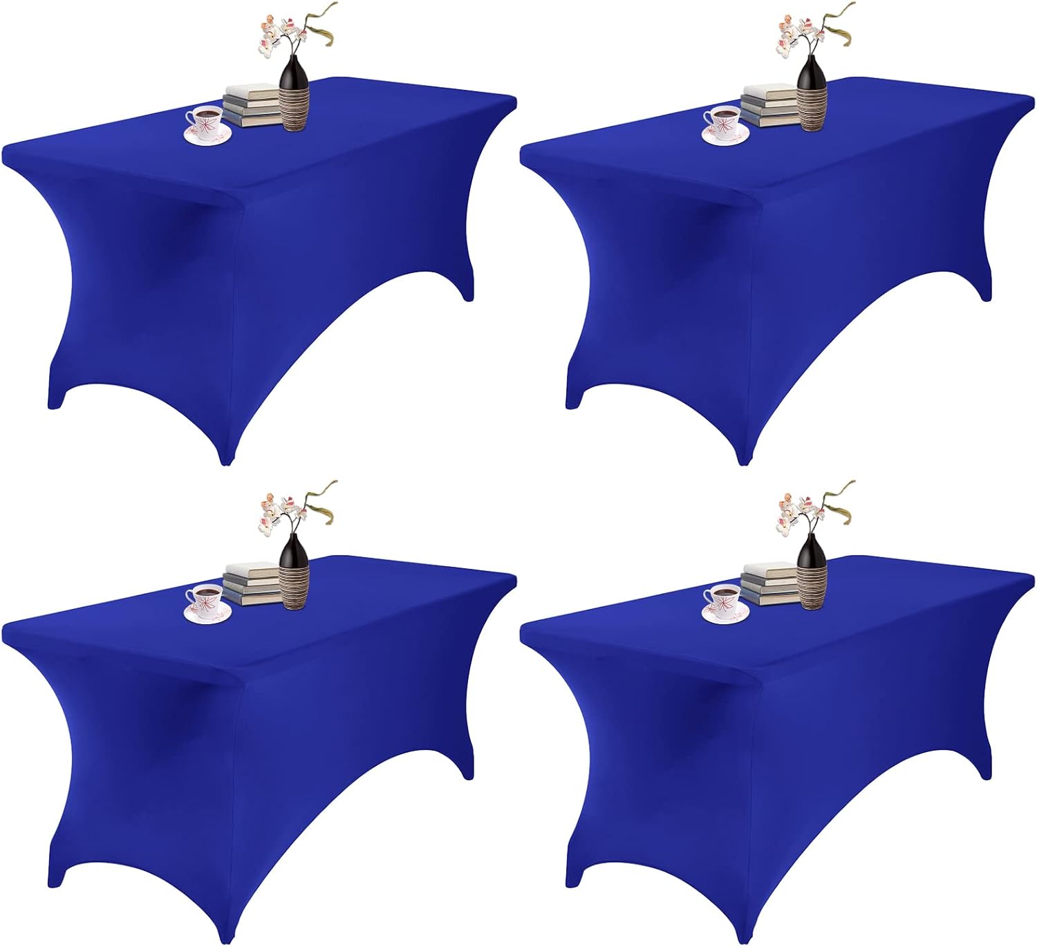4Pack Spandex Waterproof Table Covers 6ft,Spandex 6ft Waterproof Table Cover for Party,Wedding, Banquet, and Events(Royal Blue)