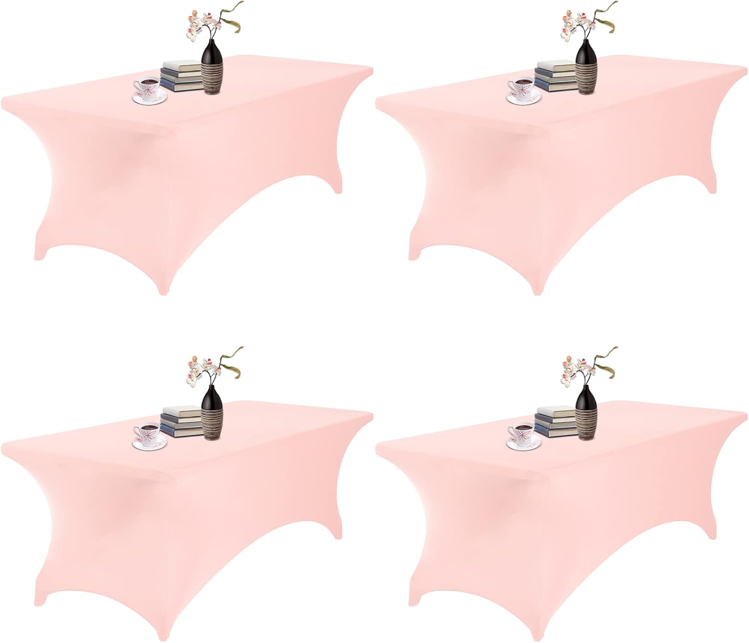 4Pack Spandex Waterproof Table Covers 8ft,Spandex 8ft Waterproof Table Cover for Party,Wedding, Banquet, and Events(Blush Pink)
