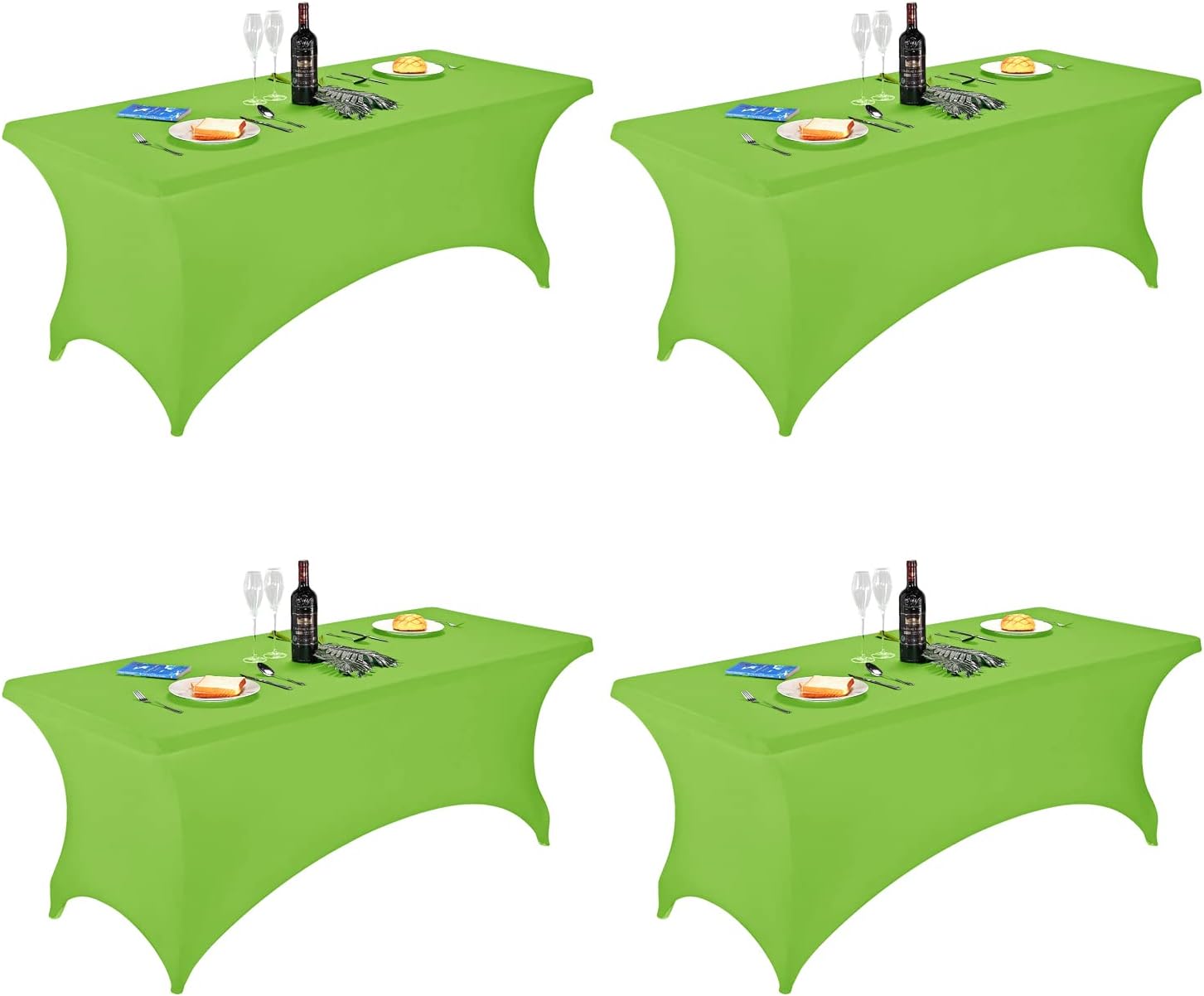 FORLIFE 4Pack Spandex Table Covers,Fitted Tablecloth for Rectangular Tables, Stretch Patio Table Covers, Universal Spandex Table Cover for Wedding, Banquet, Party (6ft, Apple Green)