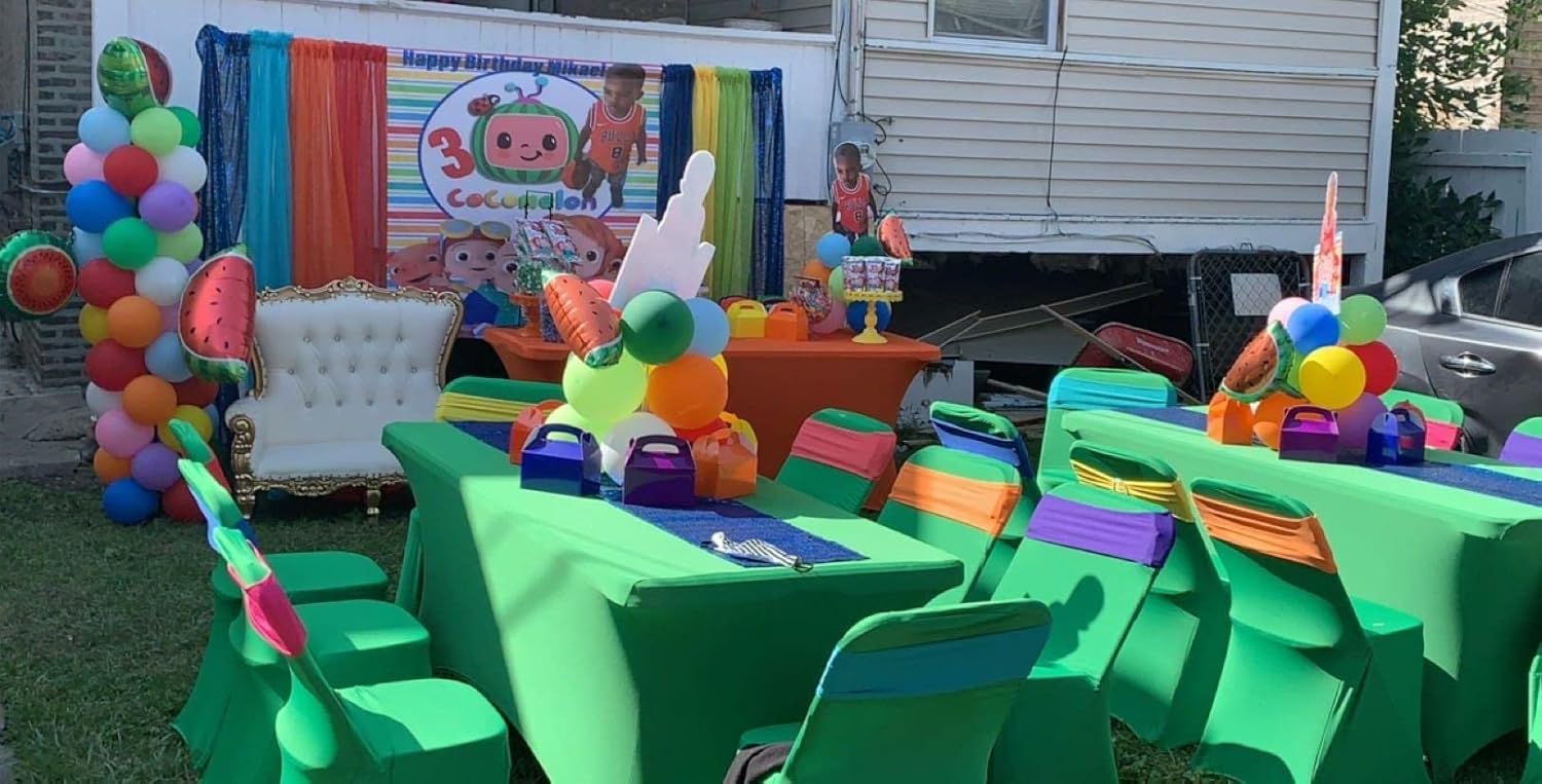 - Stretchy Fabric & Foot Pocket Design makes the table cover fit well with the table and stay in place. It's easy to install and absolutely a time-saving choice for decorating parties.