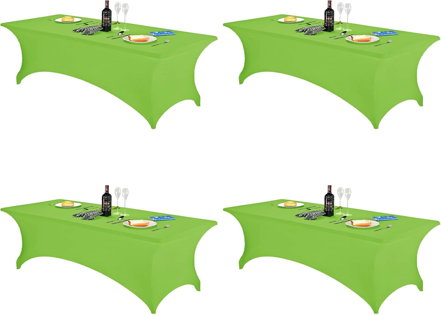 FORLIFE 4Pack Spandex Table Covers,Fitted Tablecloth for 8ft Rectangular Tables, Stretch Patio Table Covers, Universal for Wedding, Banquet, Party (Apple Green)