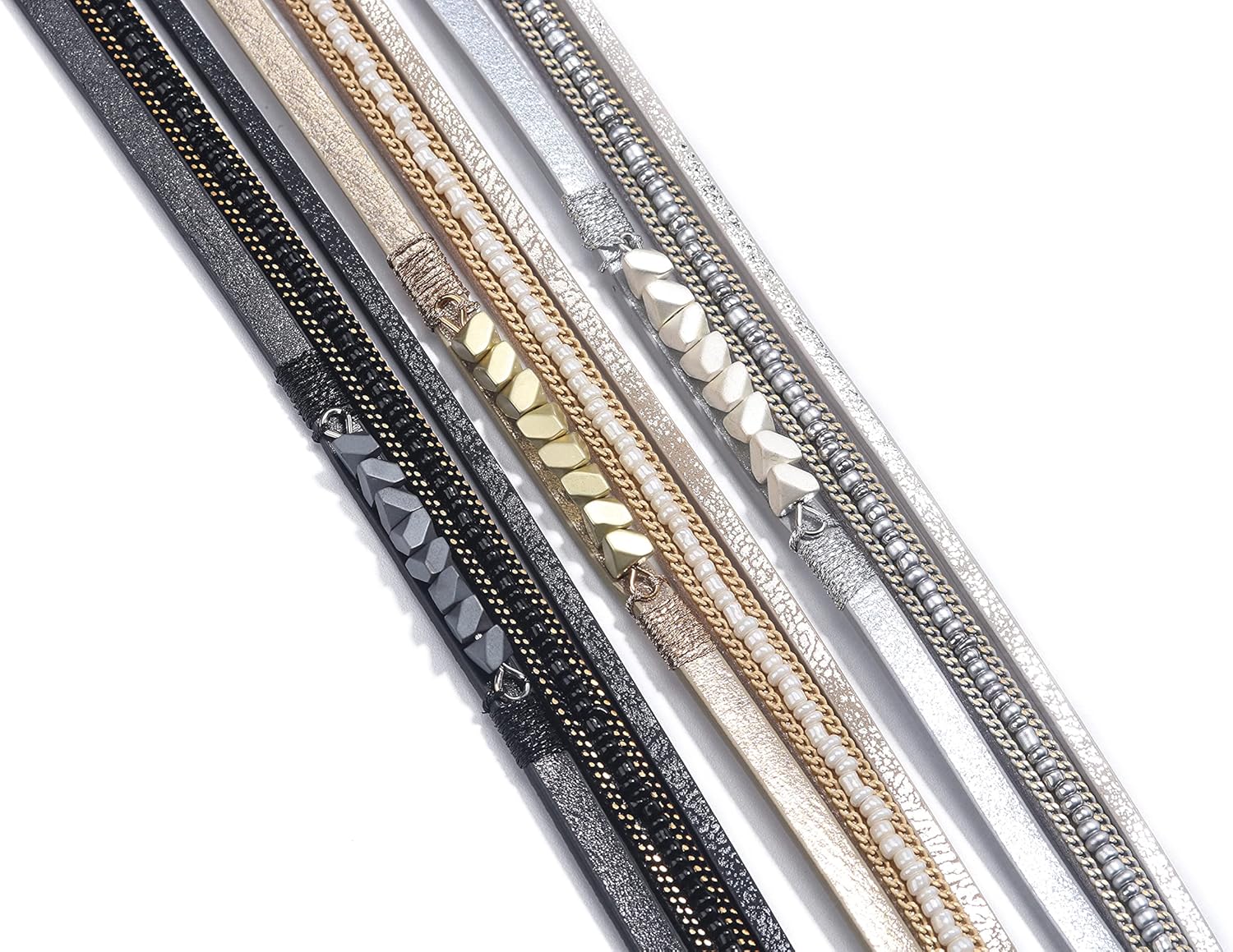 - 【SUPERIOR QUALITY】 Our Leather Cuff Bracelets is carefully crafted by handmade with environmental leather and high-grade alloy clasp to ensure you get a durable and exquisite bracelet. Stranding with premium accessories makes this wrap bracelets looks gorgeous and trend appearance, it will satisfying your taste in fashion.