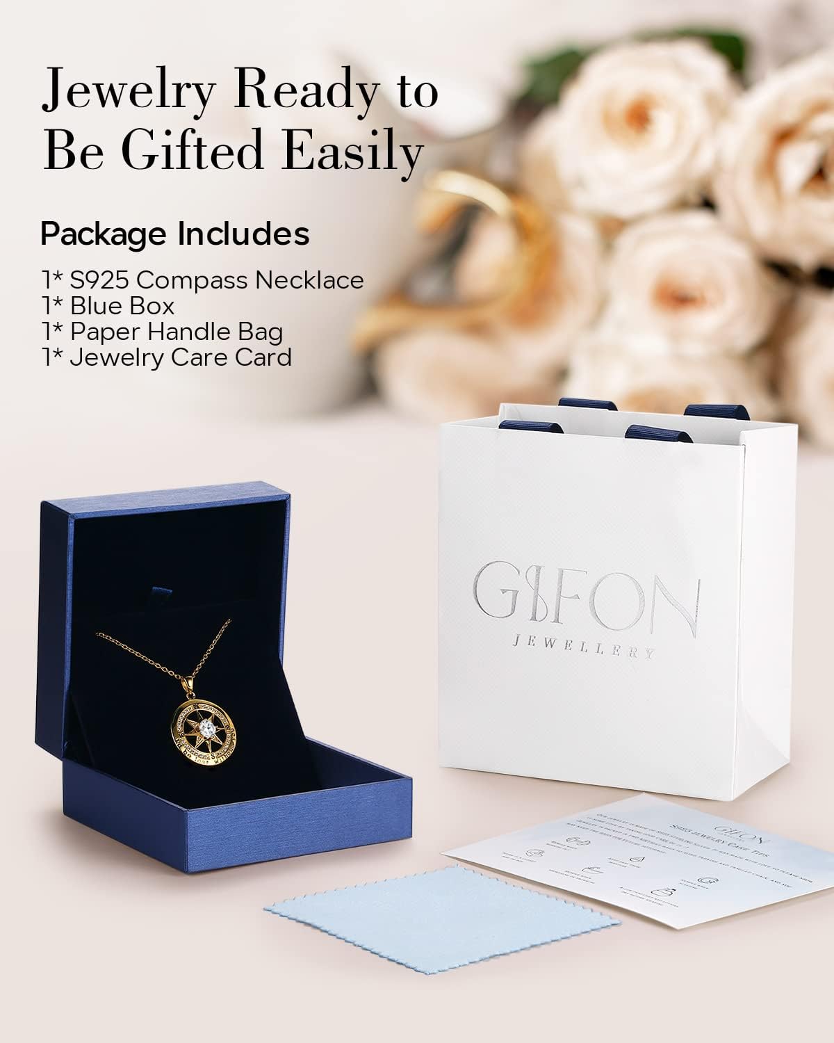 S925 Necklace Gift for Wife |Compass Jewelry |Women Anniversary |Sterling Silver |Girlfriend Birthday Gifts for Her Valentines |I'd be Lost without You |Jewel 18K Gold