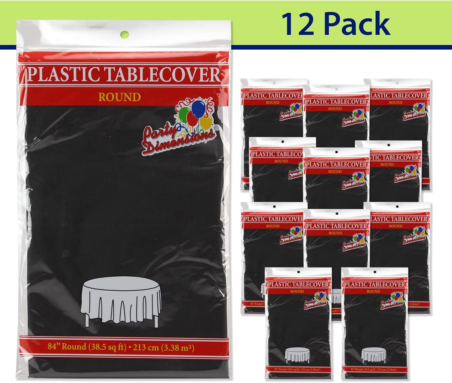 Black Disposable Plastic Tablecloth for Round Tables (12 Pack) 84 inches Table Cloths for Parties, Events & Weddings, Indoors & Outdoors, Plastic Table Cover