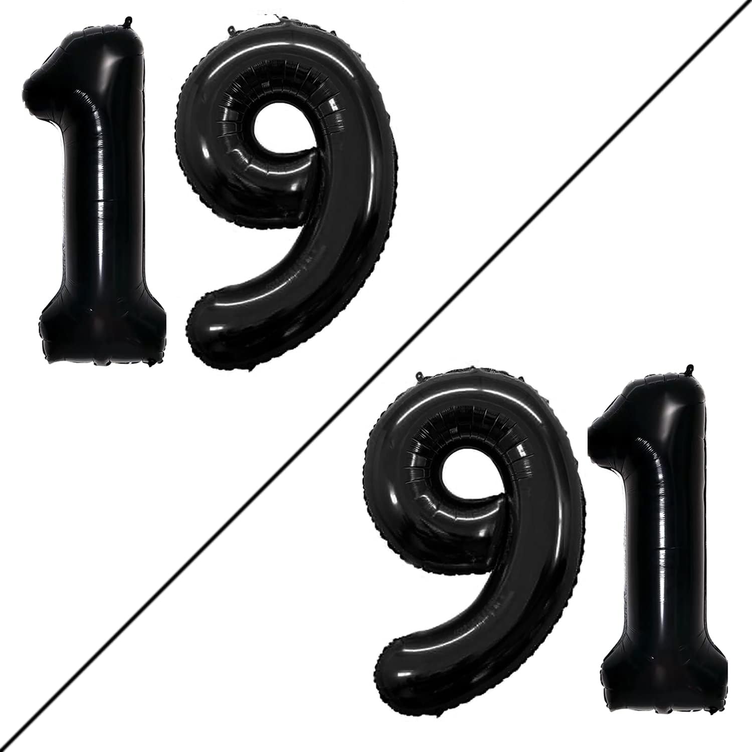 GOER Number 19 Balloons for 19th Birthday Sweet 19 Party Decorations,42 Inch Jumbo Foil Helium 91 Balloons for 91st Birthday Party Decoration (Black)