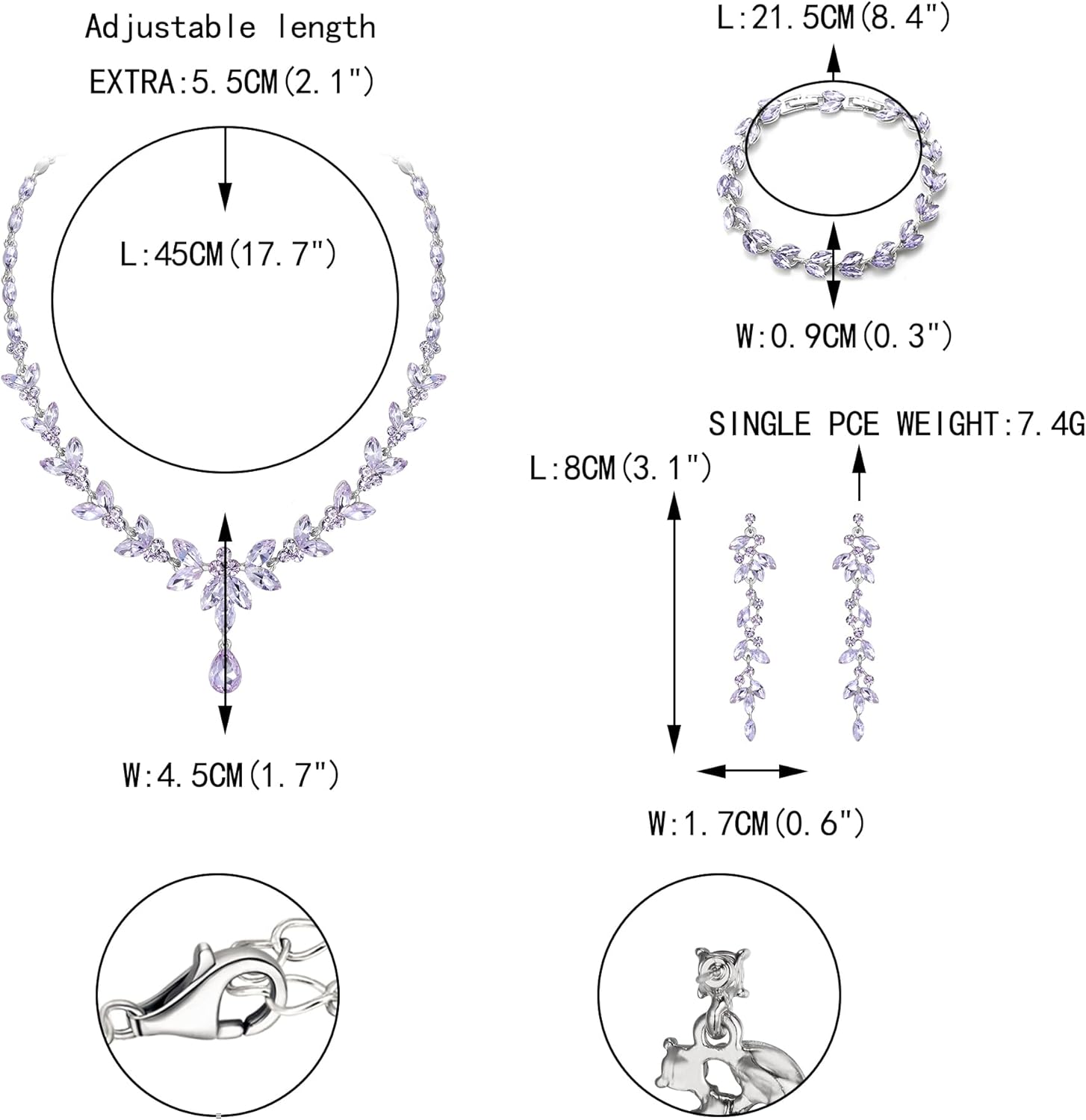EVER FAITH Austrian Crystal Bridal Bridesmaid Jewelry Sets, Elegant Marquise Rhinestone Leaf Necklace Dangle Earrings Tennis Bracelet Set for Women