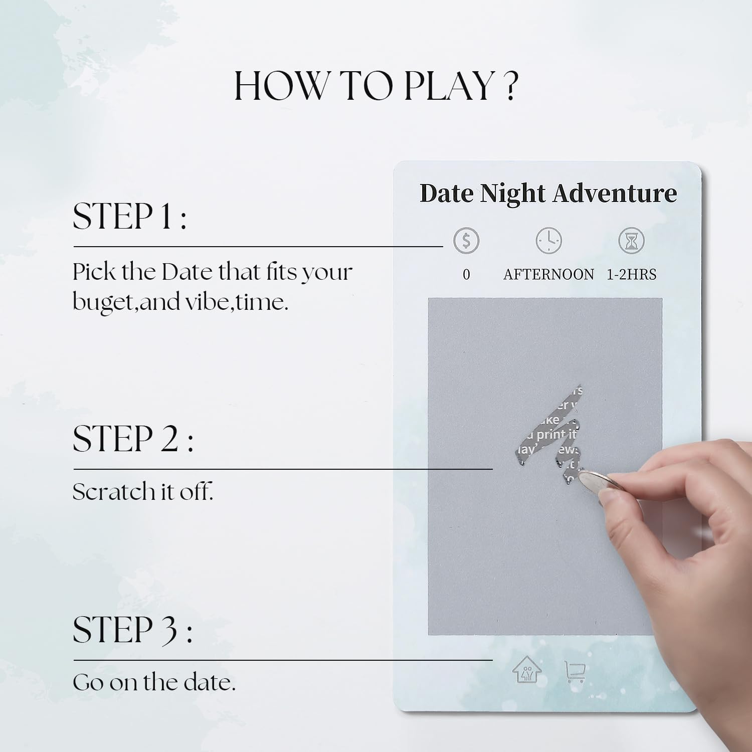 - No Complicated Rules - In this couples game, each adventure cards have time and budget info to help you decide. To start your date night ,simply pick a card that you are comfortable with. Scratch it off to reveal your adventure and there are no takebacks! Please be prepared and open-minded!