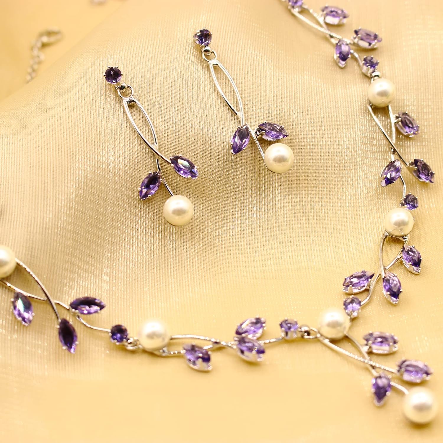 - Specification: Earrings + Necklace, 2 types Jewelry of wedding,Statement Necklace Size:16.5-19 in; Dangle Earrings length:2.2 in; Lightweight and Comfortable to Wear. Perfect Jewelry Set for Women Ladies.