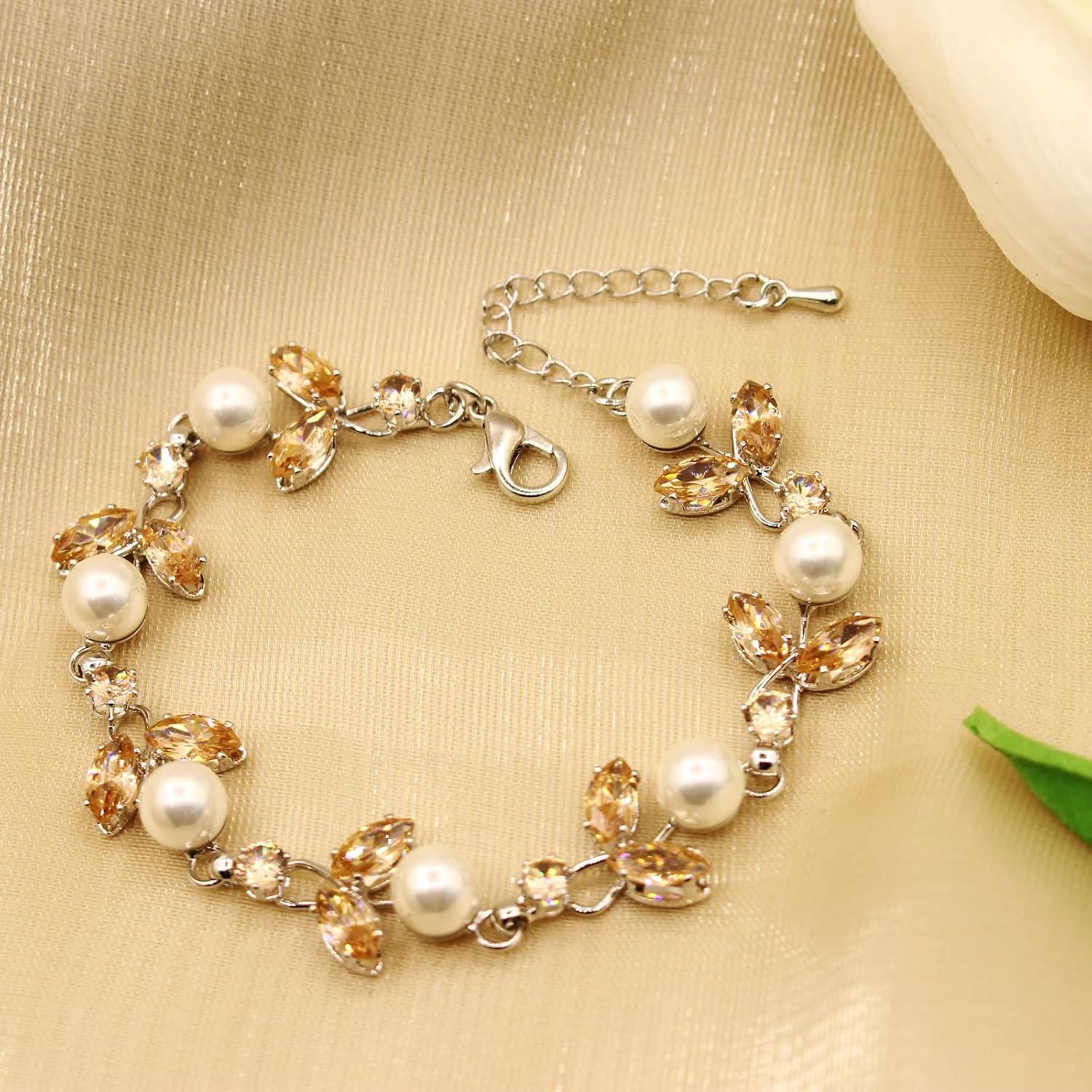 - Material: Adorned with selected shiny Austrian crystal and Pearls and Cubic Zirconia, crafted with eco-friendly Zinc alloy, Lead-Free & Nickel-Free.