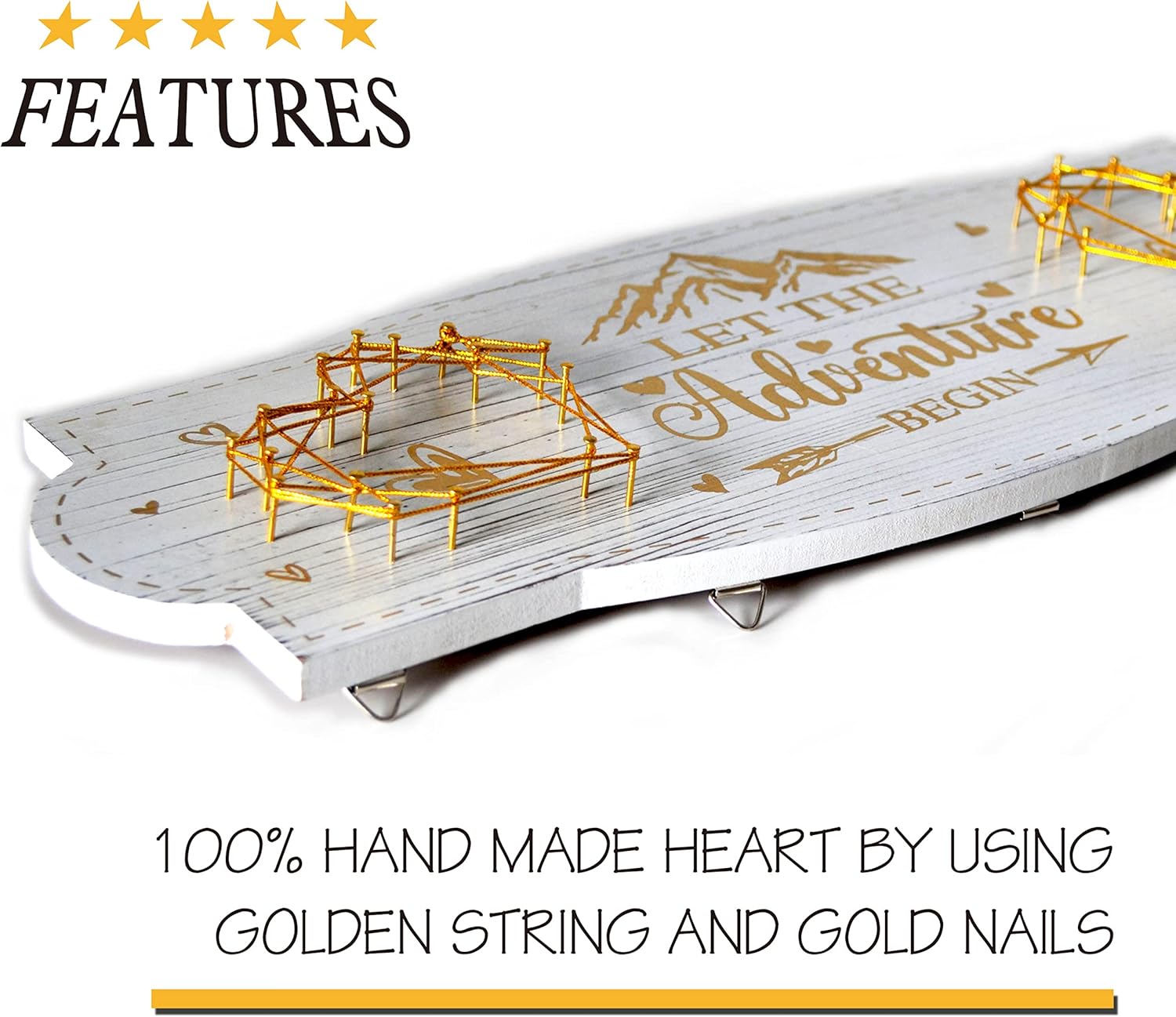 - HAND MADE AND EASY MOUNTING: Come with 12 wooden hearts clips ,Boards hand strung golden hearts with hemp rope in a gift box ,Easy to hang on the wall.