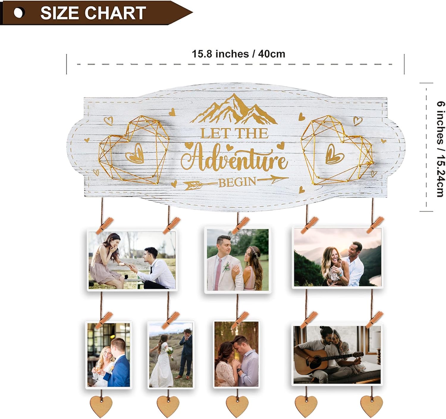 Yudarte Wedding Engagement Gifts for Women Bride to Be - Romantic Wall Picture Display Board with Clothespins and Twine for Newly Engaged Couples - Let the Adventure Begin