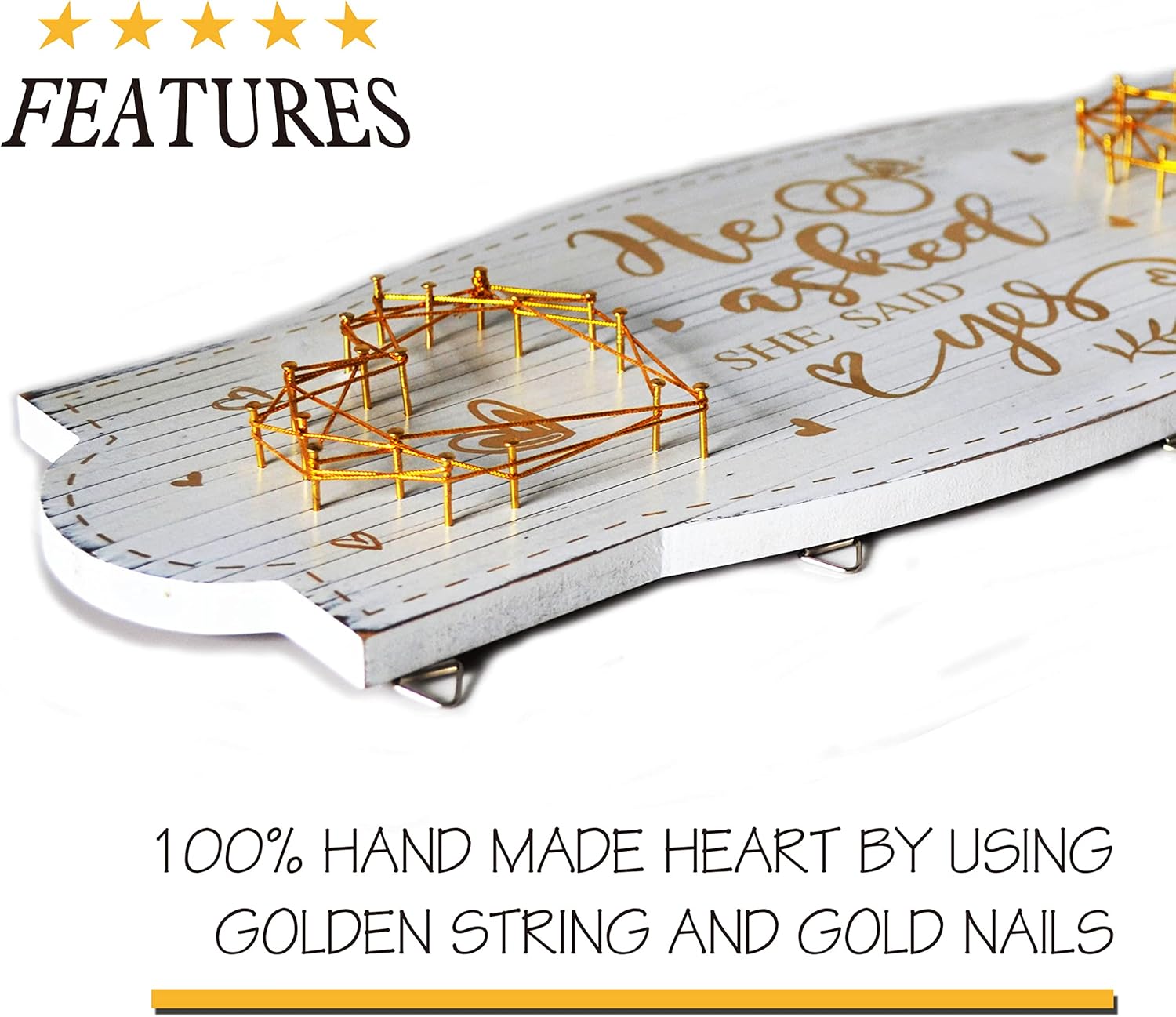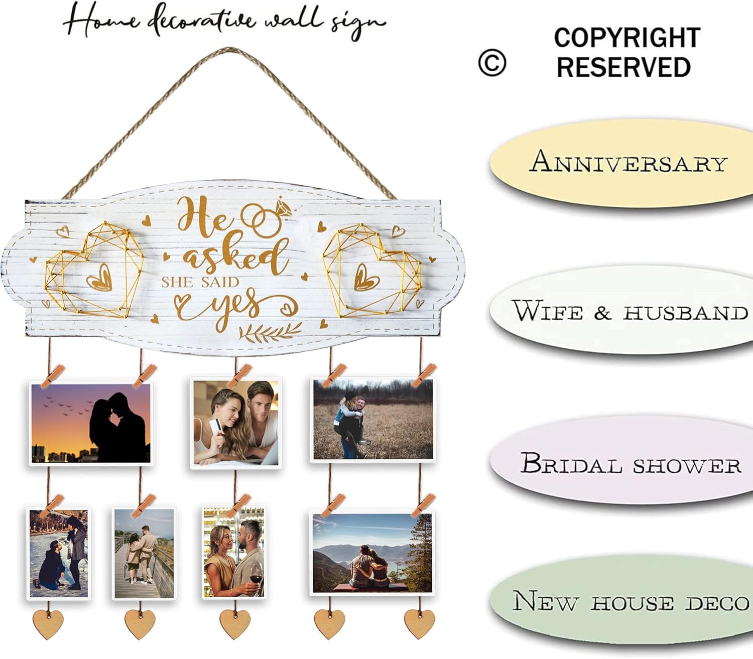 Yudarte Wedding Engagement Gifts for Women Bride to Be - Romantic Wall Picture Organizer with Clips and Twine For Newly Engaged Couples - He Asked,She Said Yes