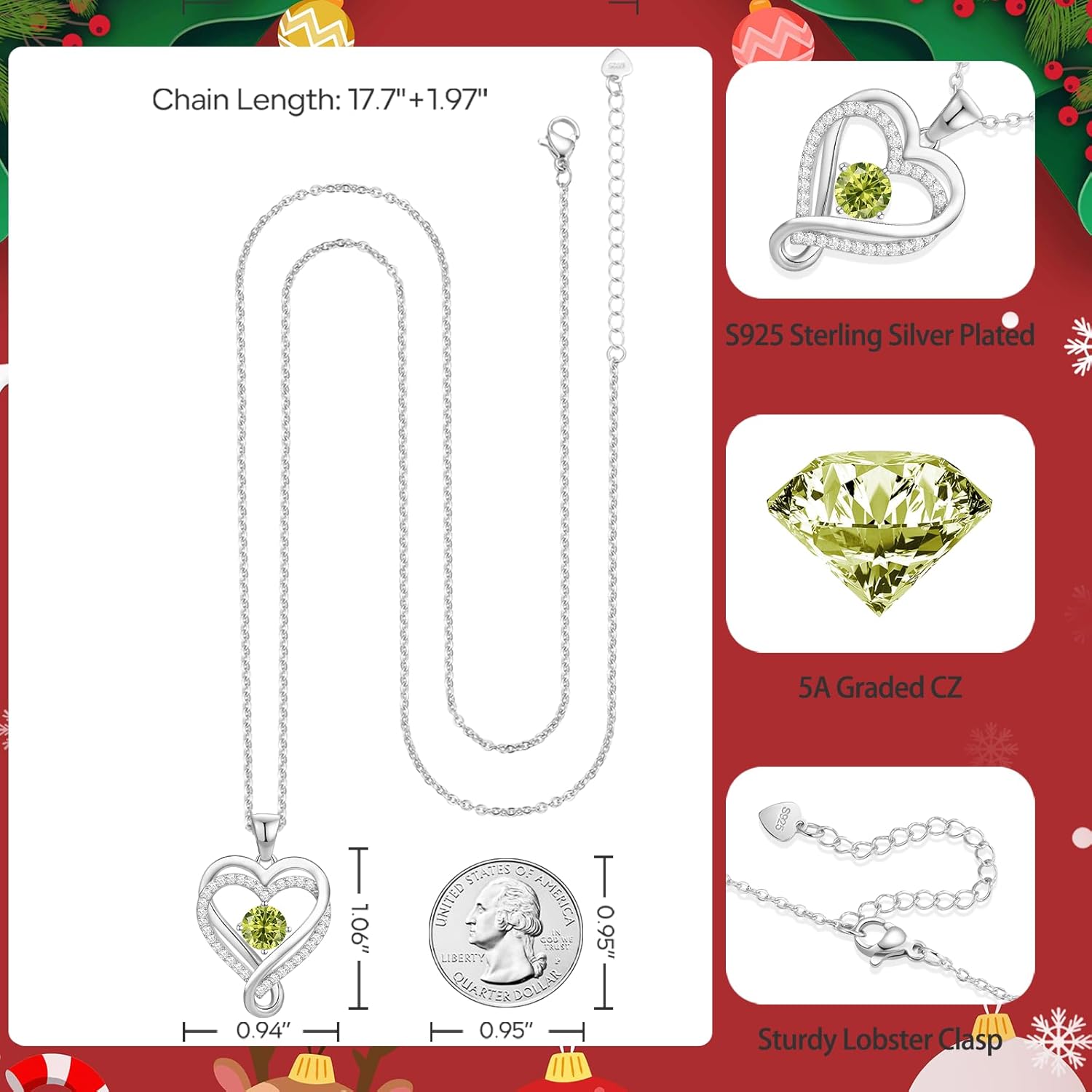 18K Rose Gold Infinity Love Heart Birthstone Necklace for Women Wife, Anniversary for Women Wife Birthday Gift for Her Girlfriend Mom Daughters, I Love You Women's Jewelry S925 Sterling Silver