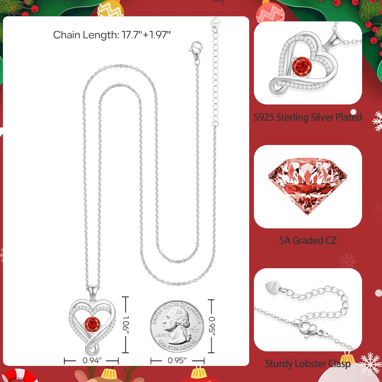 - S925 Infinity Love Heart Necklace for Women : The necklace features infinity double heart design to represents the Infinite love to your loved ones or yourself. And the silver heart pendant and chain is S925 sterling silver plated, and the cable chain has an extender and a lobster clasp ( 18"+2"), suitable for most women. This love jewelry is a great gift for woman on any special day, such as Birthday, Anniversary, Christmas, Thansgiving, New Year, Valentines’s Day, Mother’s Day, etc.