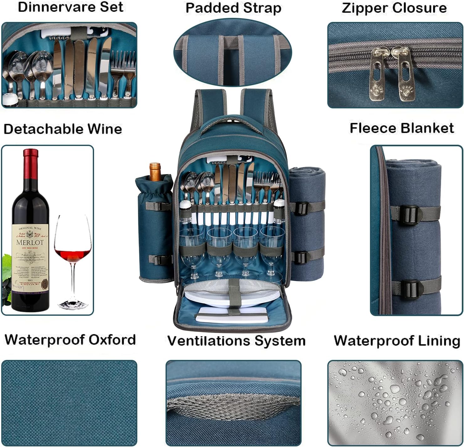 Hap Tim Picnic Basket Backpack for 4 Person with Blanket, Wine Holder, Cooler Compartment, Cutlery Set, Couples Gifts, Mr & Mrs Gifts, Bridal Shower Gifts, Registry Wedding Registry, Blue (3065-BL)