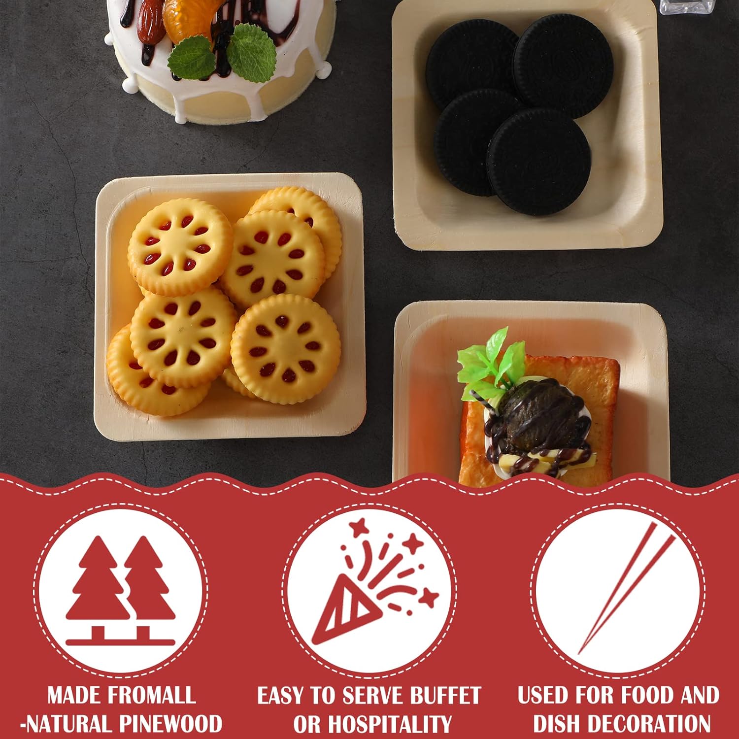 - Suitable Size: these disposable wooden plates measure approx. 3.94 x 3.94 inch, with a depth of 0.6 inch/ 1.5 cm, enough to store a small amount of appetizers at both indoor and outdoor dining events, adding fresh flavor for your desserts, appetizers, salads, snacks, and other food