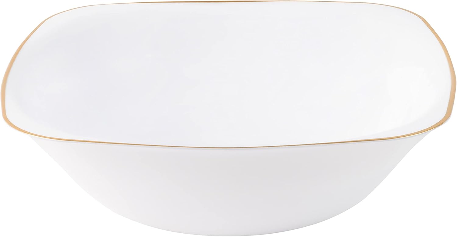 PLASTICPRO White Plastic Organic Party Square Soup bowls White With Gold Rim Elegant Disposable Tableware Dishes 16 OZ 32 Count