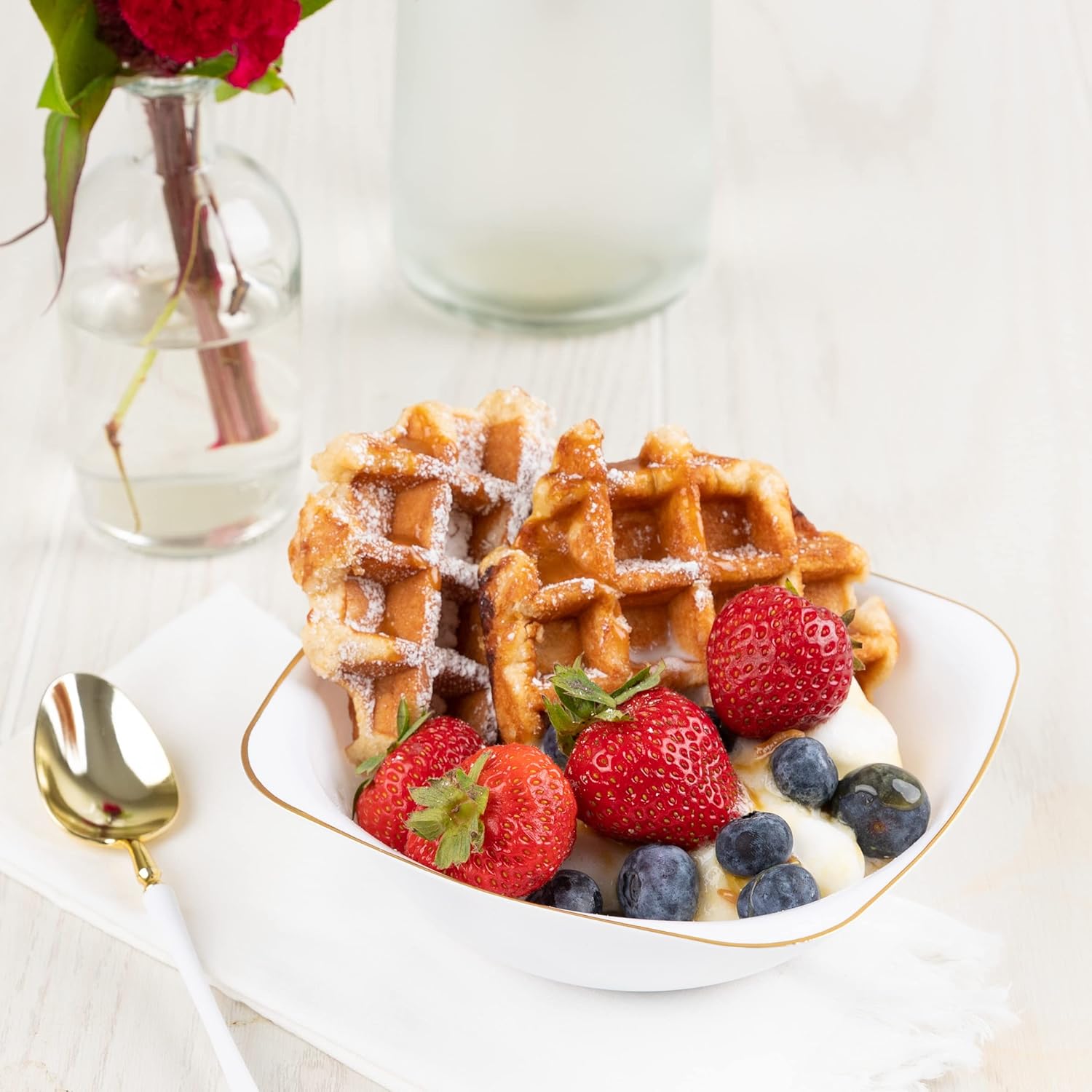 - [16 OZ 32 Count] White Plastic Organic Design Party Square Soup bowls With Gold Rim Premium heavyweight Elegant Disposable Tableware Dishes