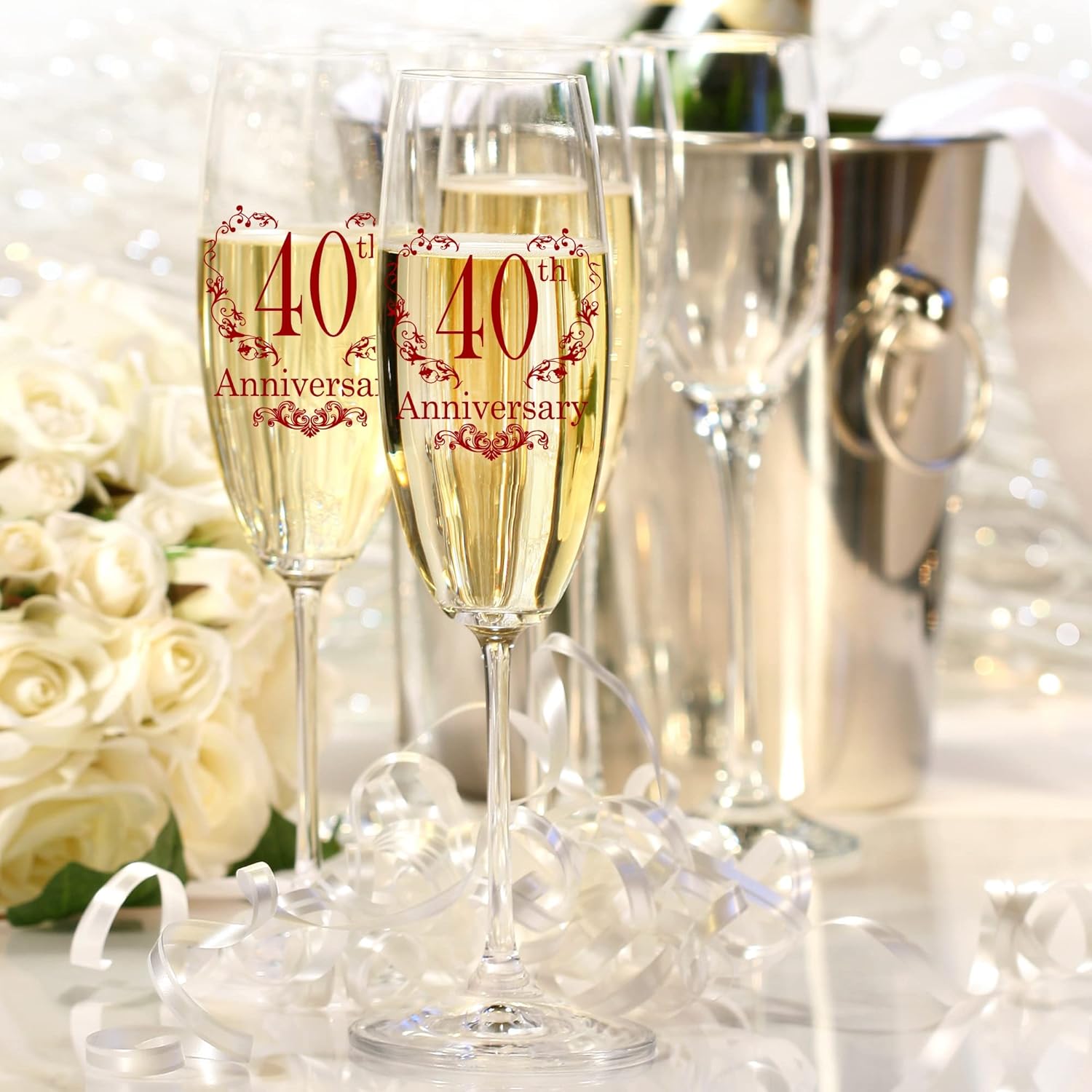- Anniversary Gift for Couple - The 40th anniversary engraved text pattern on the anniversary champagne flutes is the most timeless and precious meaning that signifies 40 years of marriage, a milestone worth celebrating, and can also be given as a gift on any anniversary to celebrate the wonderful time you have spent together.
