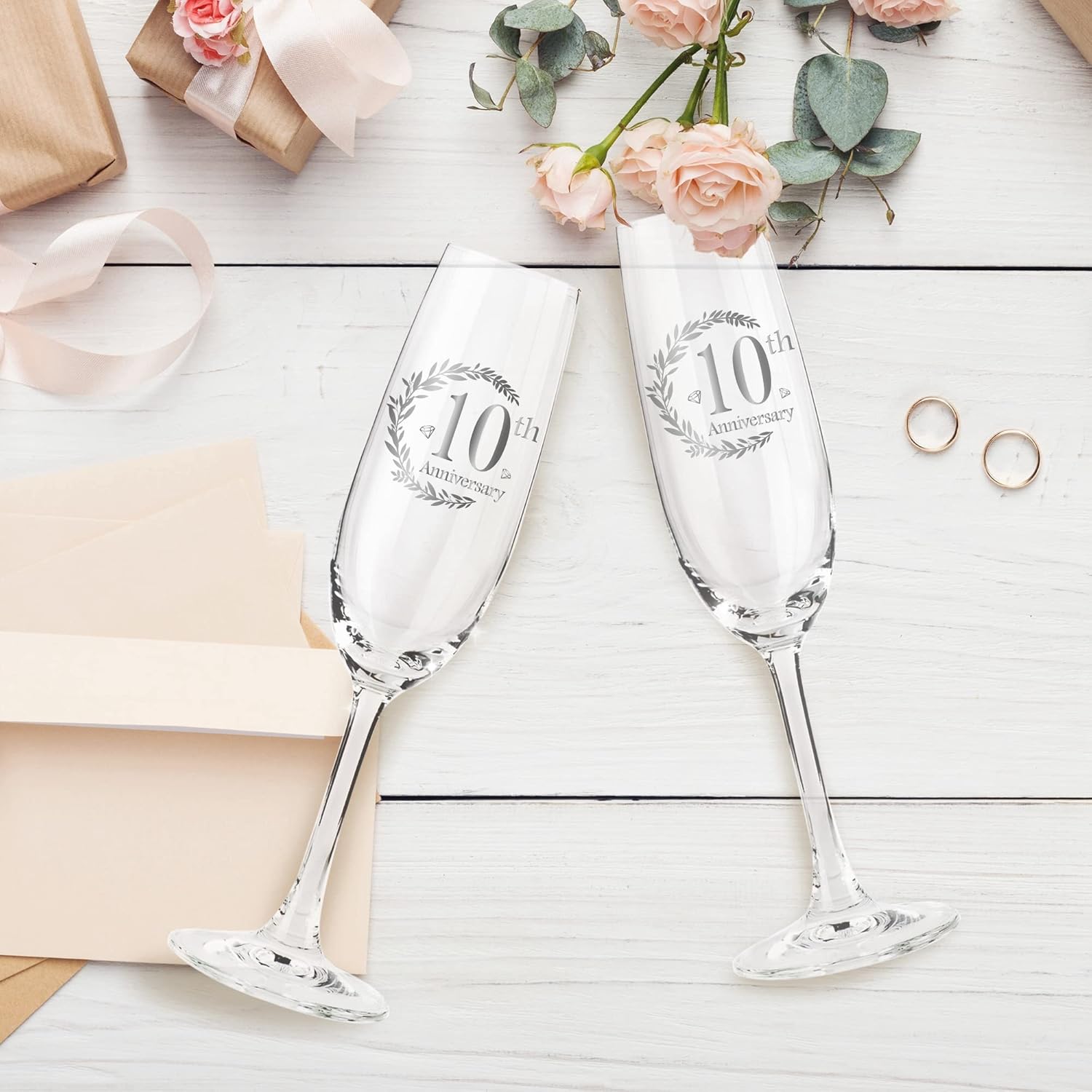 - 10th Anniversary Champagne Flutes - Give this thoughtful and romantic 10th anniversary gift for couple and witness your loving husband's big smile when he opens it. It is a very meaningful and thoughtful gift for happy couples, grandparents, parents, husbands, and wives, and it is a wonderful wish for them.