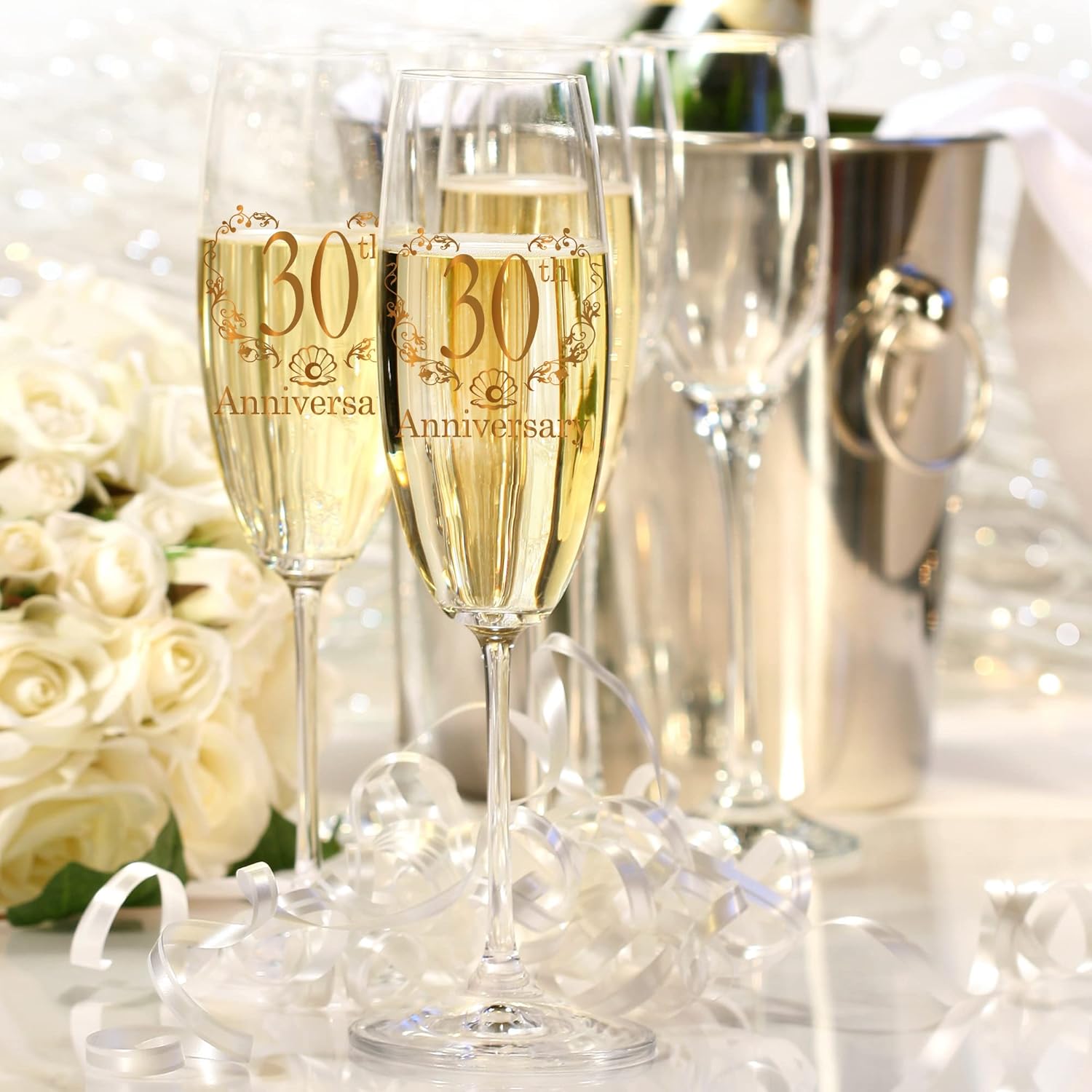 - Anniversary Gift for Couple - The 30th anniversary engraved text pattern on the anniversary champagne flutes is the most timeless and precious meaning that signifies 30 years of marriage, a milestone worth celebrating, and can also be given as a gift on any anniversary to celebrate the wonderful time you have spent together.