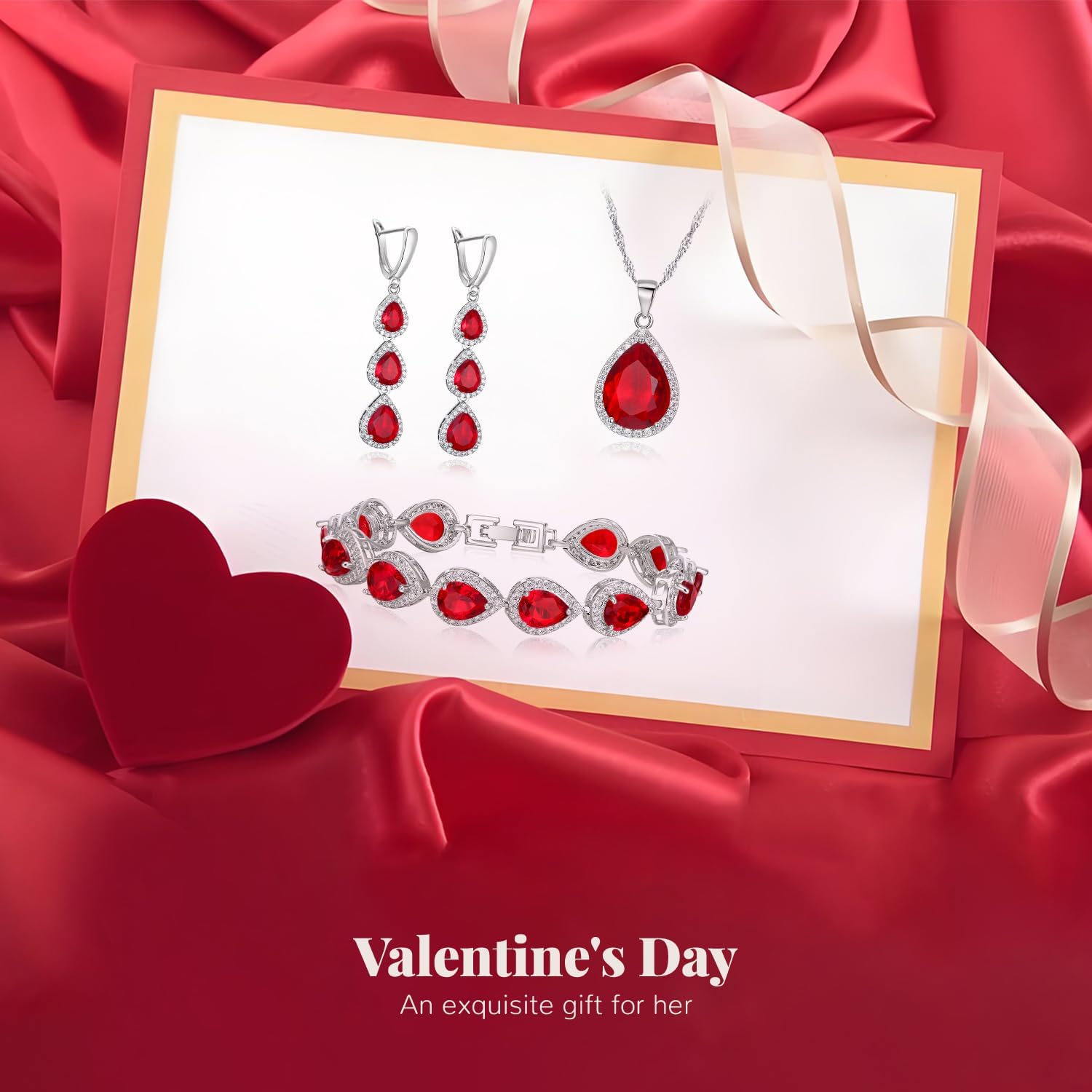 - ❤High Quality Material:❤ This Women's Wedding Jewelery Set is made of Eco-Brass and Silver Plated; adroned with stunning cubic zirconia and Ruby crystal. High Polished. Nickel-free, Hypoallergenic and Shiny Forever. Will not change the color, health and environmental protection.