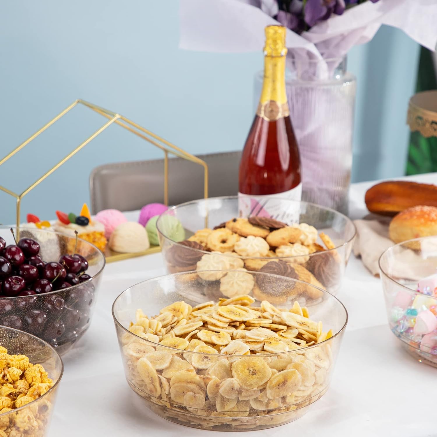 - Perfect For Any Occasions - The gold large bowls are our latest round shapes design for holiday party,one different gold glitter round the circle looks more luxurious. Perfect for Wedding's , Catering , Salad Bars and Parties Serving , Plastic Punch Bowl , Snack , Chip for Parties , Candy Buffet and more.Whenever you want,the gold bowls dispoasble are convenient for you.