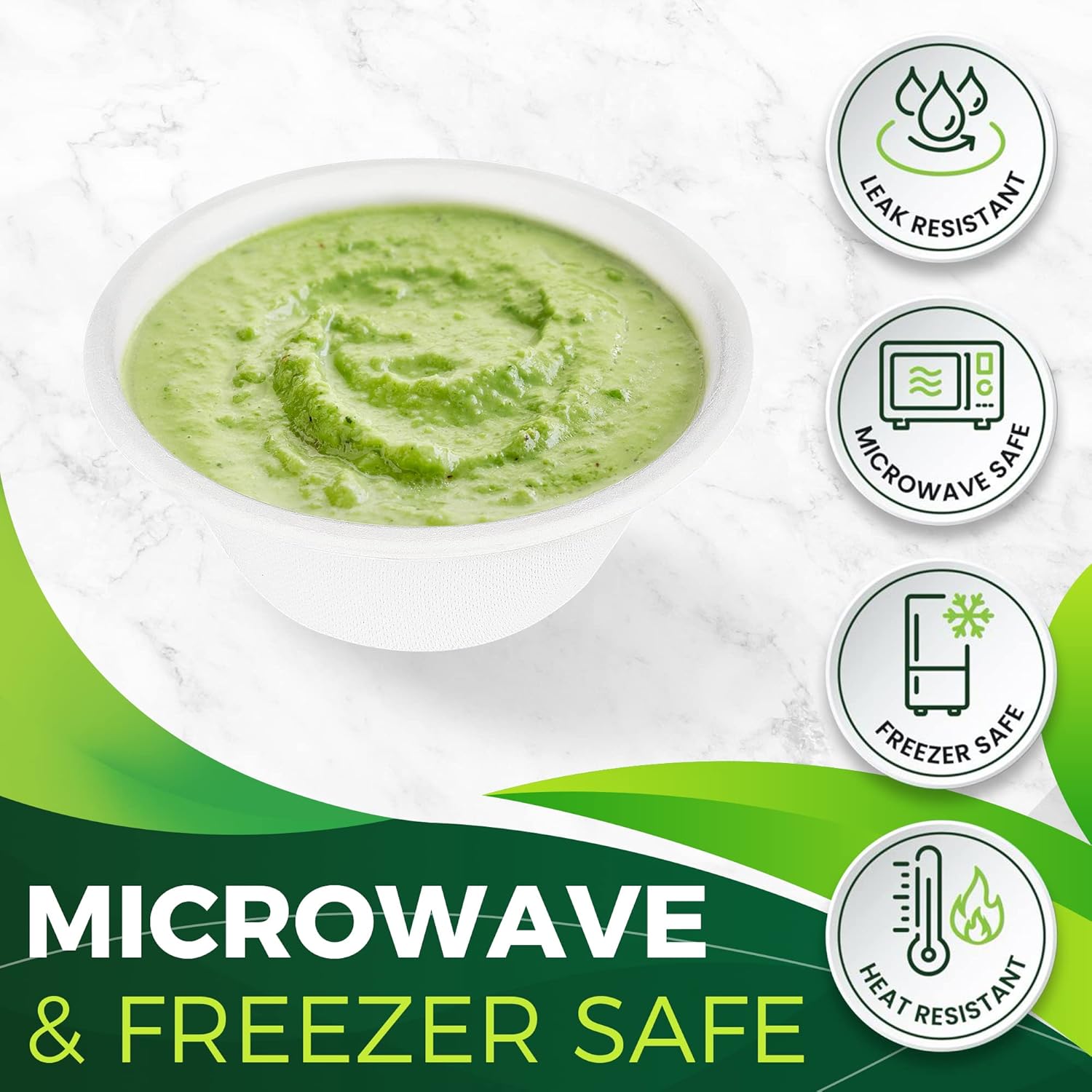 - ๐ฟ ใThicker, Sturdier & Leak-Resistantใ- Our unique process mixed Bamboo and Bagasse to create heavy-duty compostable bowls you will love! Bamboo has natural strength and liquid resistant characteristics that help provide superior strength and reduce unnecessary leaks. Perfect for hot soup or any liquid and sauce you want to serve.