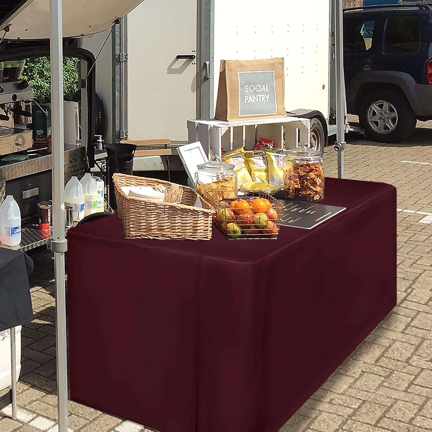 HolidayIdeas Fitted Burgundy Tablecloths - 72 x 30 Inch - 2 Pack Rectangle Table Clothes for 6 Foot Folding Tables, Polyester Fabric Table Cover for Trade Show, Craft Show, Events