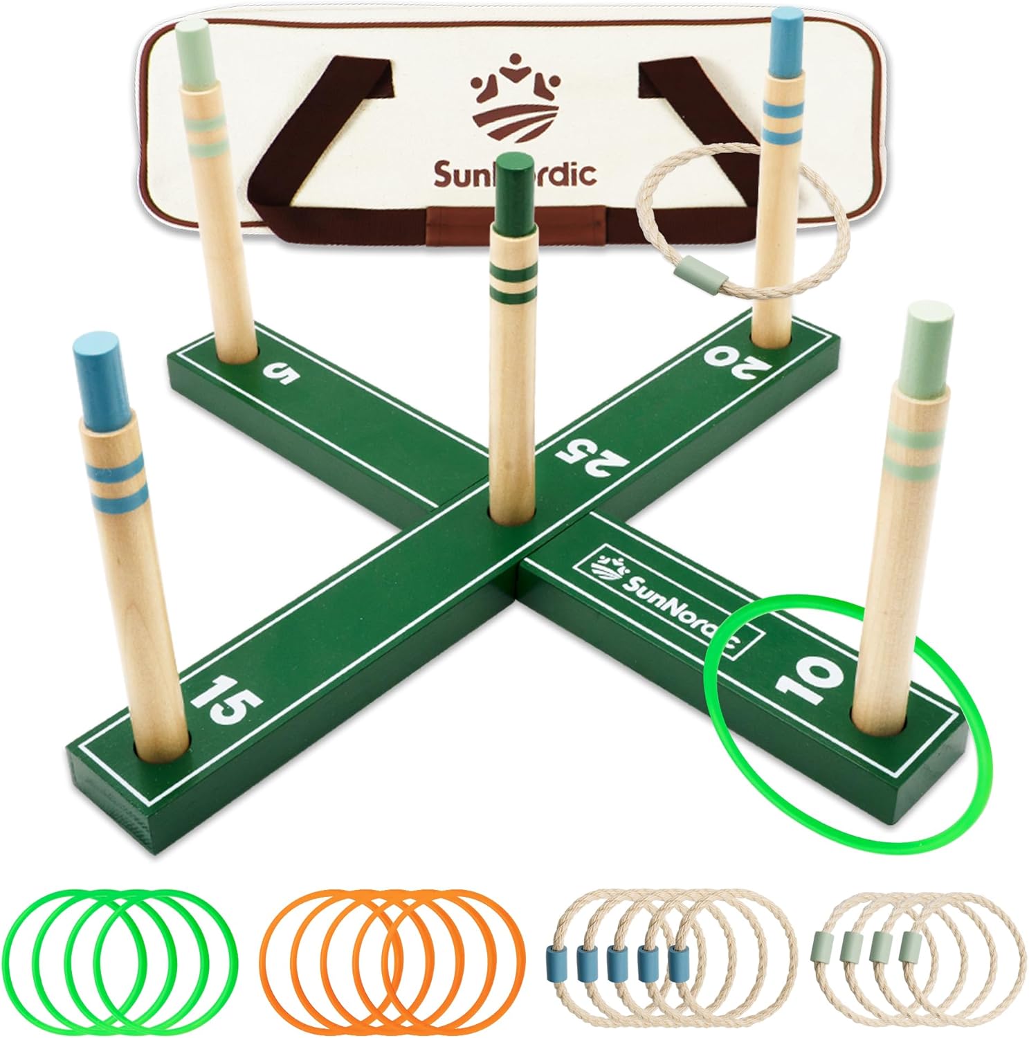 - 【FUN TOSSING GAME FOR ALL AGES】This classic rings toss game is a challenging and entertaining outdoor lawn game, suitable for all ages to enjoy leisure gaming fun. And the perfect present and ideal choice for Christmas, family holidays, camping, and birthday parties.