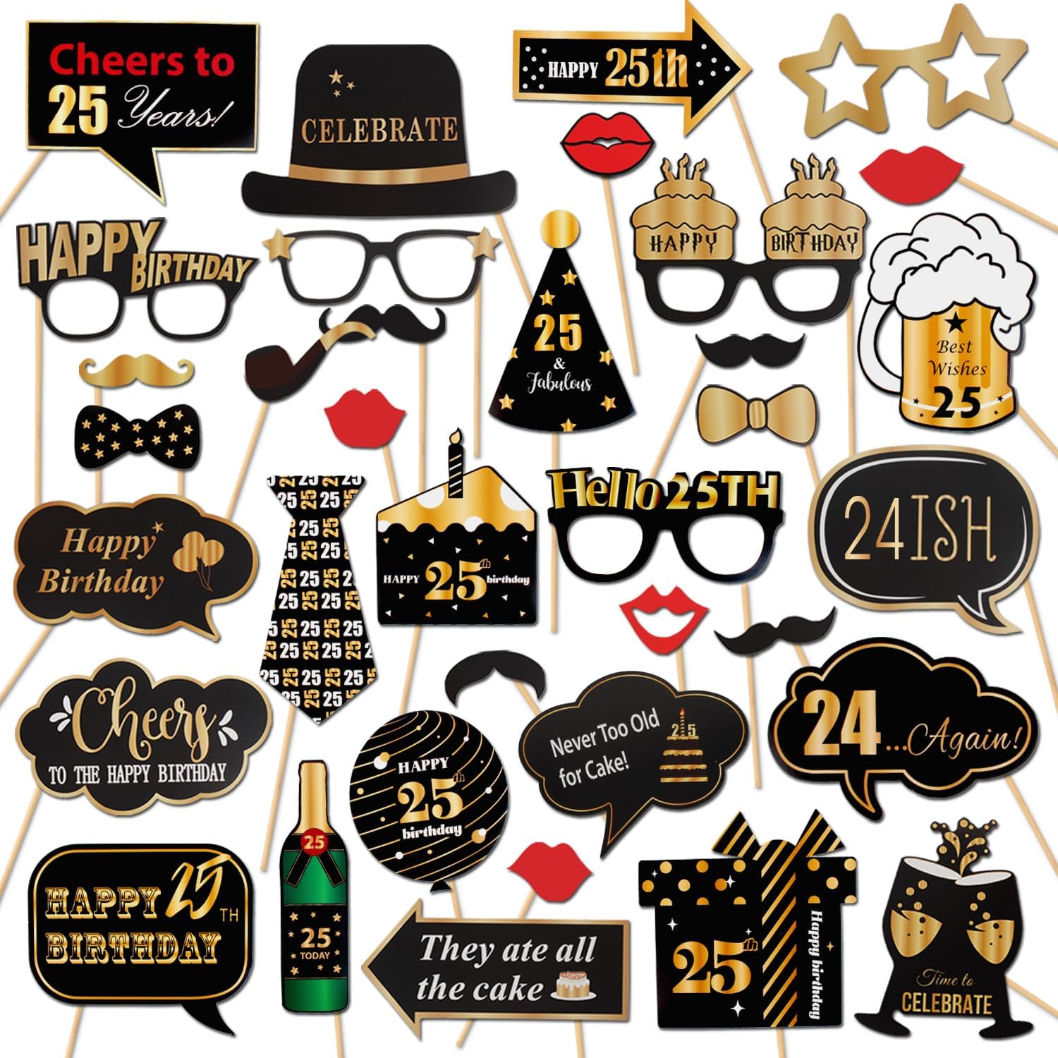 - [What you get] Comes with 36pcs “25th Birthday" Photoprop centerpieces decorations,made of thick paper and beautiful details.Take pictures will very pretty!
