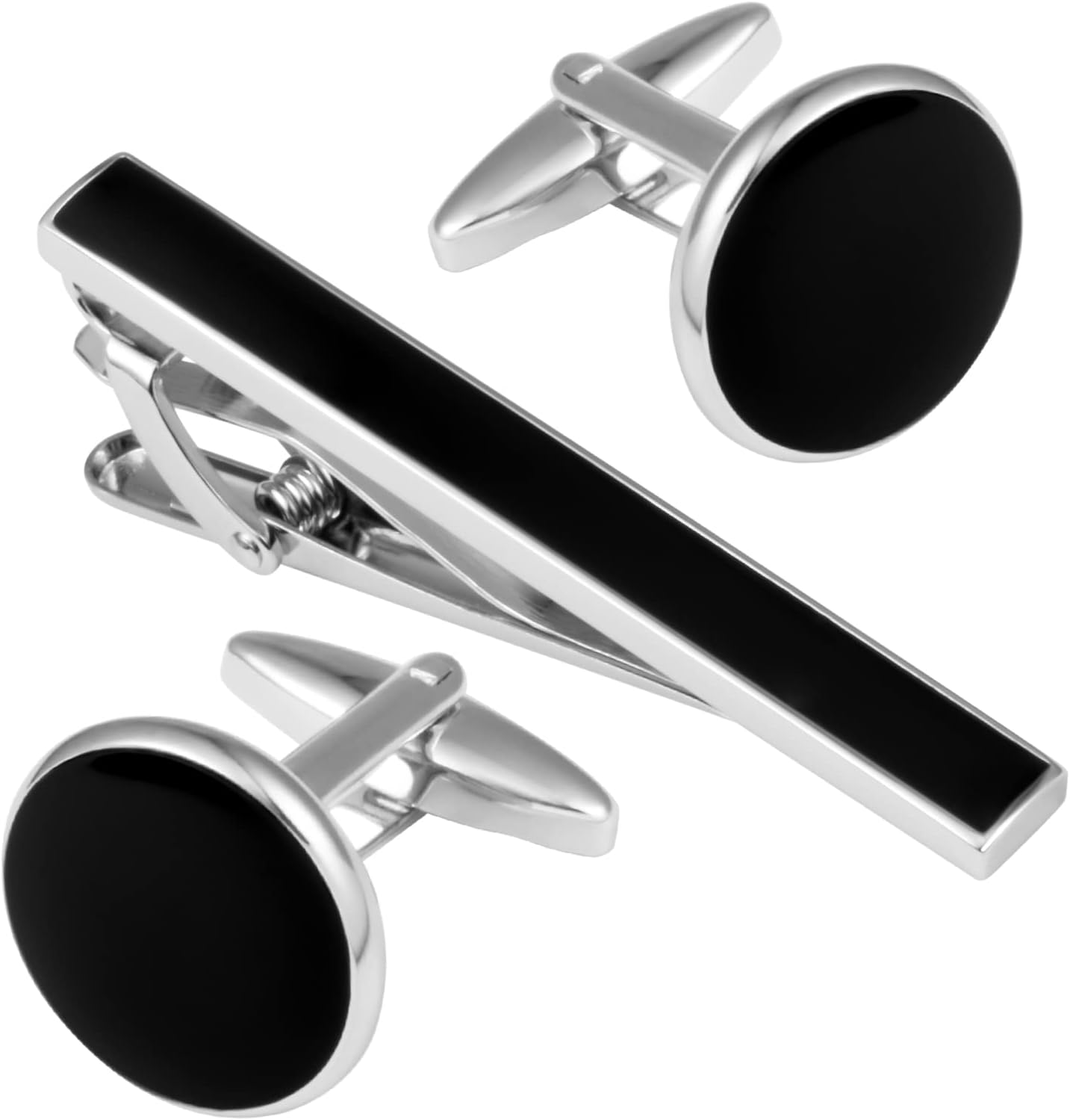 - EVERY MAN’S BEST CHOICE: One order includes a pairs black cuff links and a black Tie Clip, classic and elegant. Easy to match your shirts and tie or other formal, business attire.