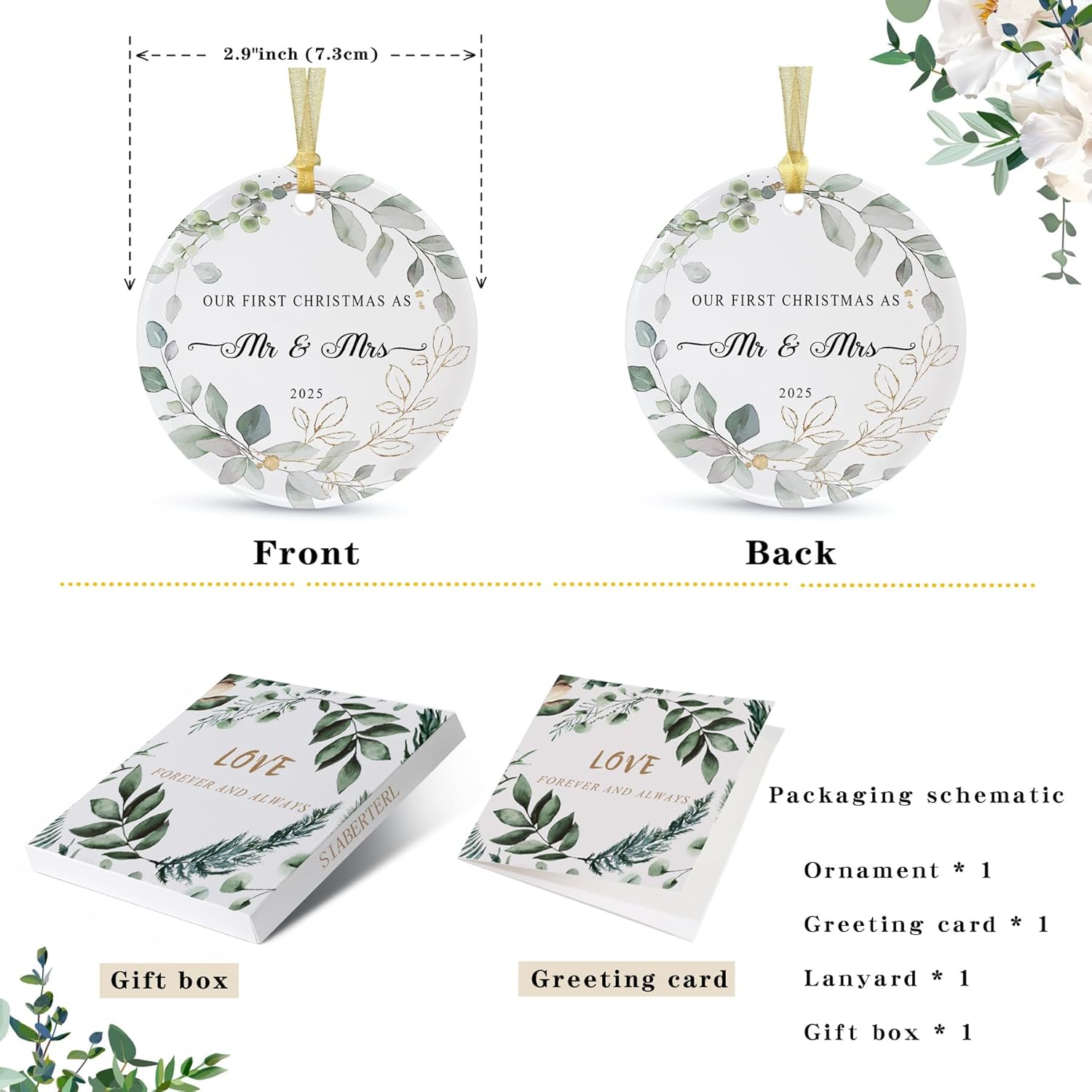 - 【Package includes】Includes 1 Our First Christmas as Mr and Mrs Ornament,1 Gold Ribbon,1 Heart Colored Box.If you have any questions about the product,you can contact us at any time,and we will answer you the first time!