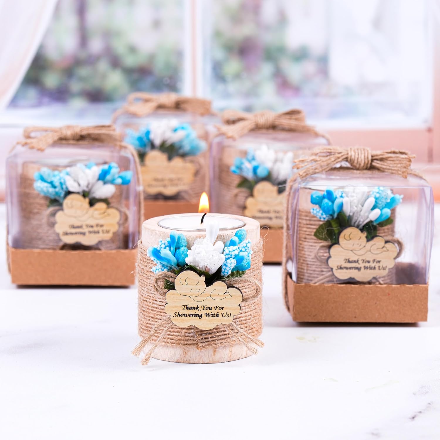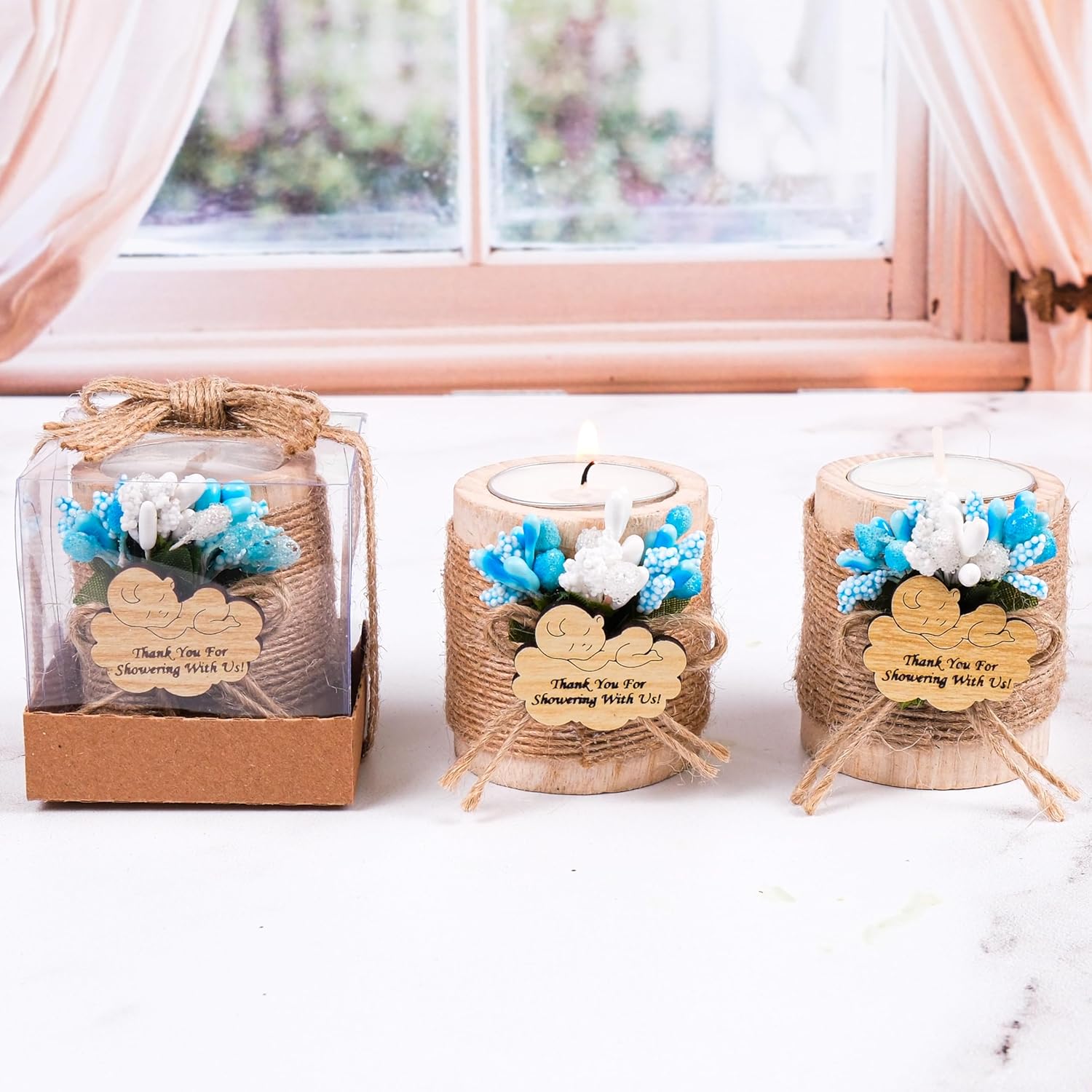 HTF Pack of 10 Baby Shower Decorations Wood Tealight Candle Holder, Gender Reveal Favors, Babyshower Wood Candle Holders (BS-Blue, Light Brown)