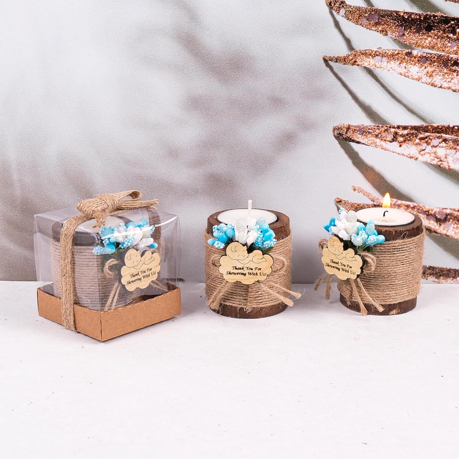 HTF Pack of 10 Baby Shower Decorations Wood Tealight Candle Holder, Babyshower Gifts, Gender Reveal Favors, Baby Shower Favors Wood Candle Holders (BS-Blue, Dark Brown)