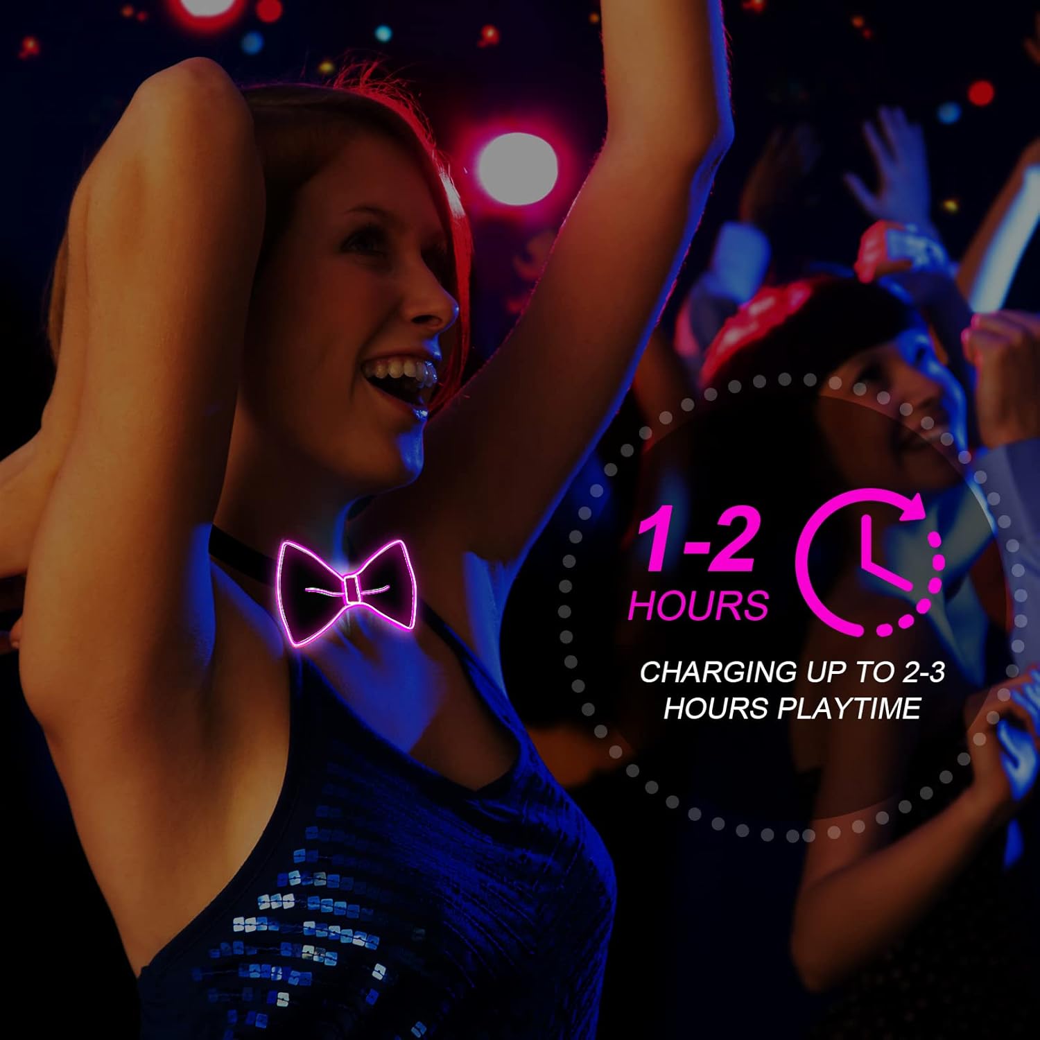 Ainiv Light Up Neckties Bowties Suspenders LED Party Supplies Glow in the Dark Adjustable for Women and Men Parties