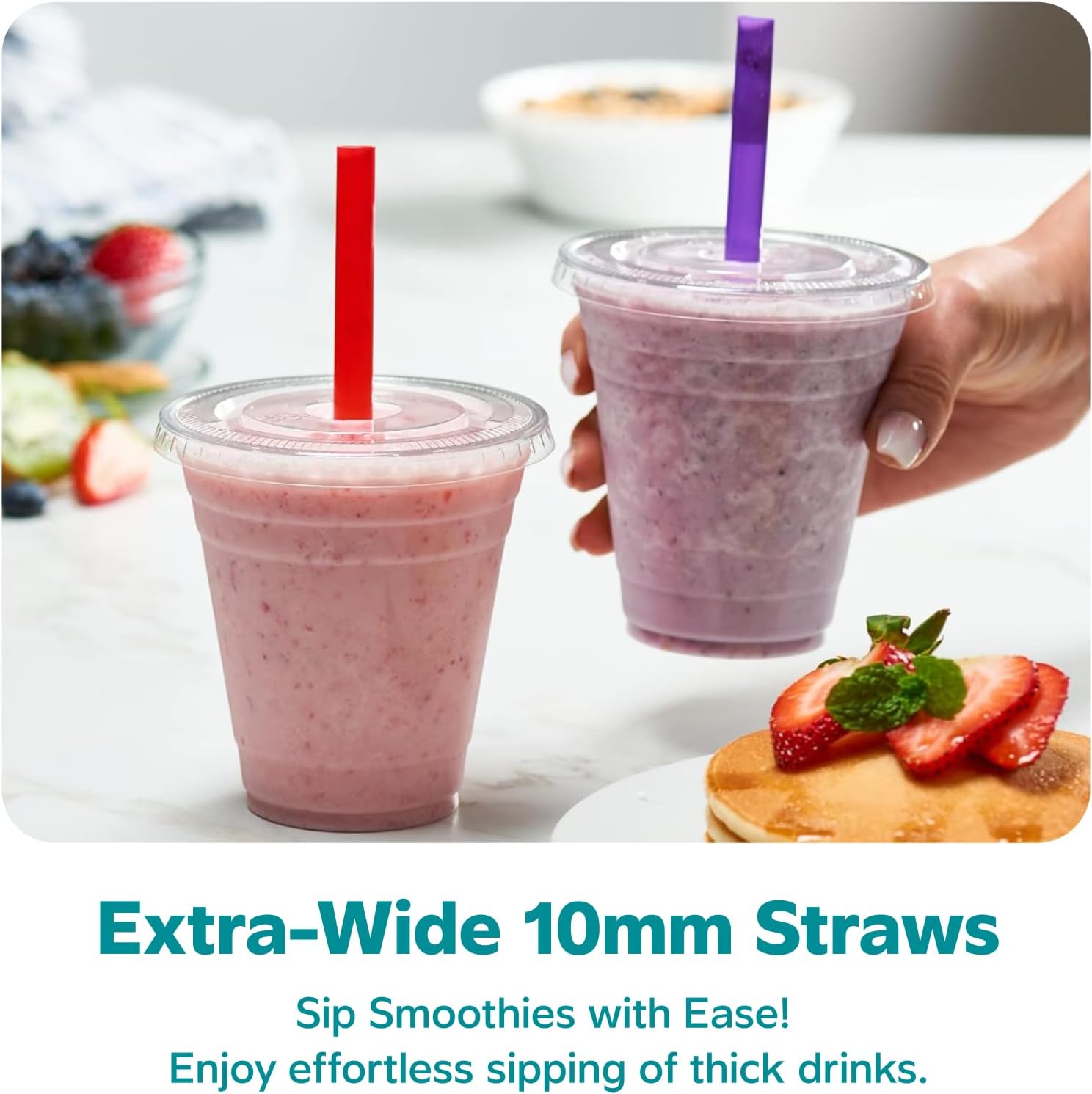 - Convenient Flat Lids and Straws: The included flat lids fit securely on the cups, preventing spills and making them ideal for on-the-go use. The straws provide easy sipping, making these cups perfect for any cold drink.