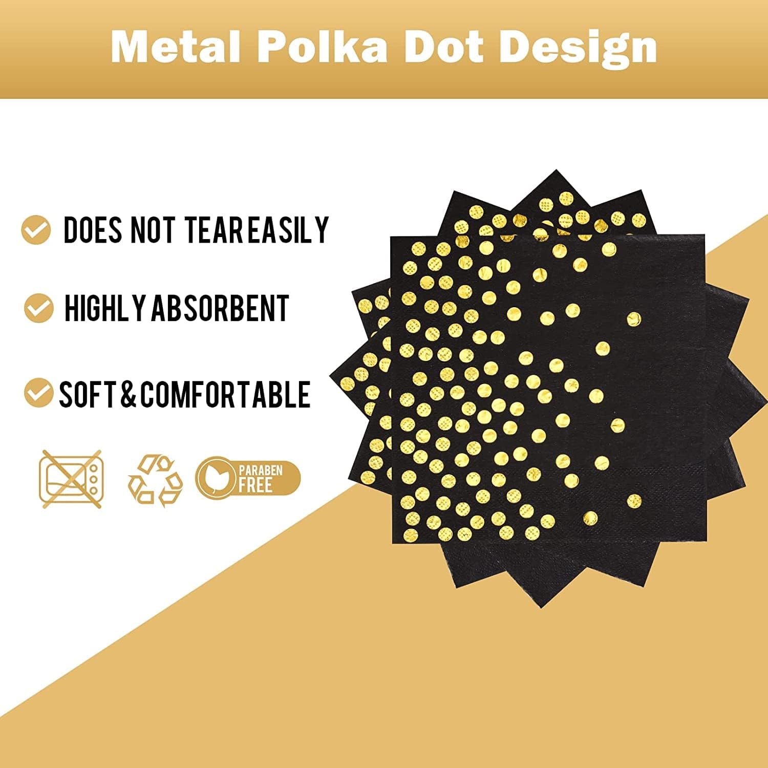 - 2.Gold Foil Polka Dot Design: This party paper plate and napkins is all designed with gold foil polka dots, which is very stylish and beautiful with bright and attractive colors, I believe your guests will really like this design
