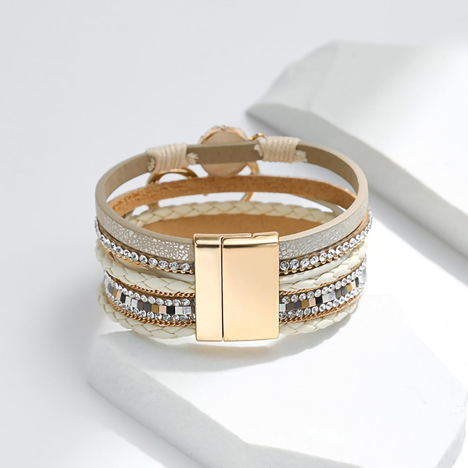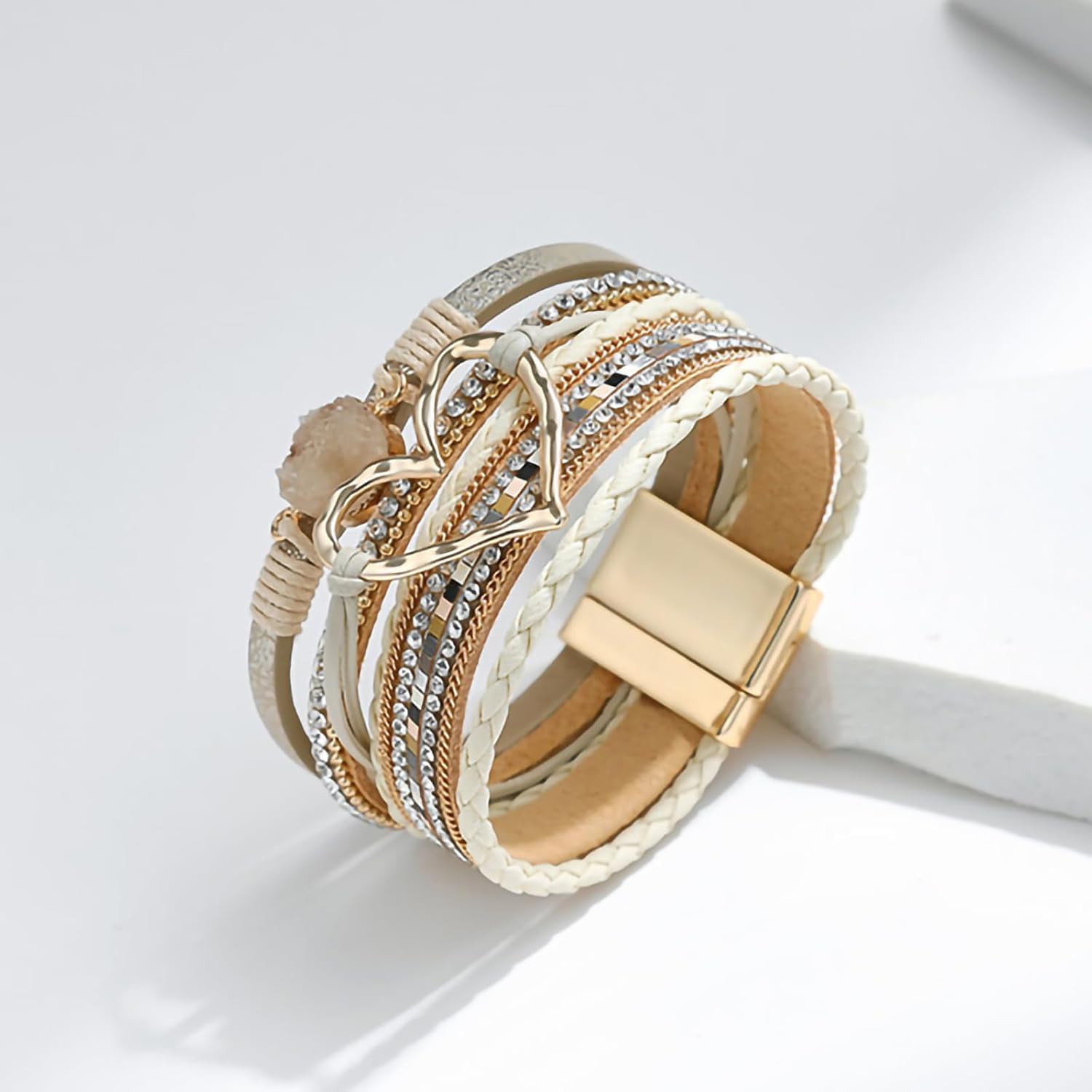 - 【UNIQUE DESIGN】 Our gorgeous and attractive leather bracelet features multiple strands of leather cords combination in different texture, adorned with a heart accessory and stone. You can wear our wrap bracelet on different occasions, no matter shopping, working, party, dance or dating, this bracelet will attract a lot of attention, you'll get more compliments.