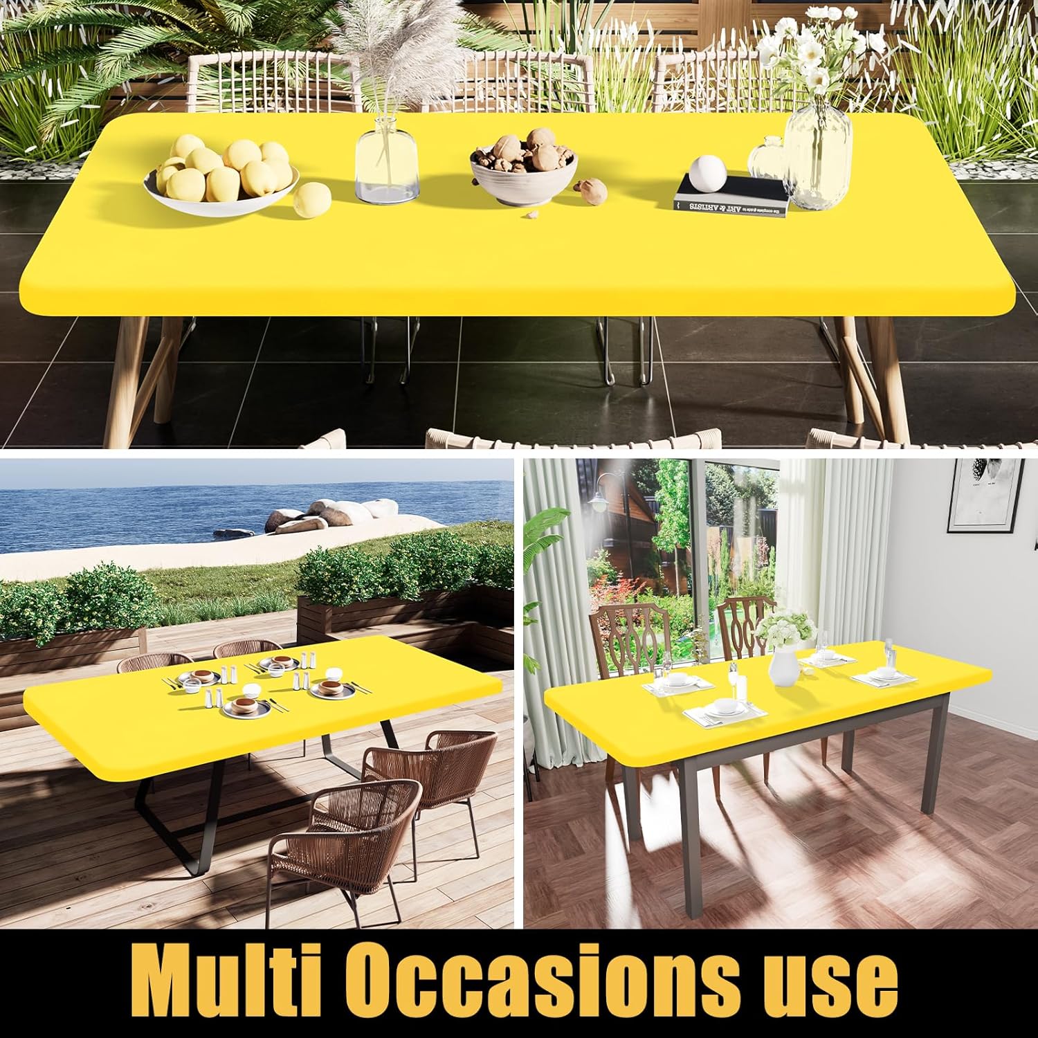 Smiry Rectangle Tablecloth, Elastic Fitted Flannel Backed Vinyl Tablecloths for 6ft Folding Tables, Waterproof Wipeable Table Covers for Indoor, Outdoor, Picnic and Camping (Yellow, 30"x72")