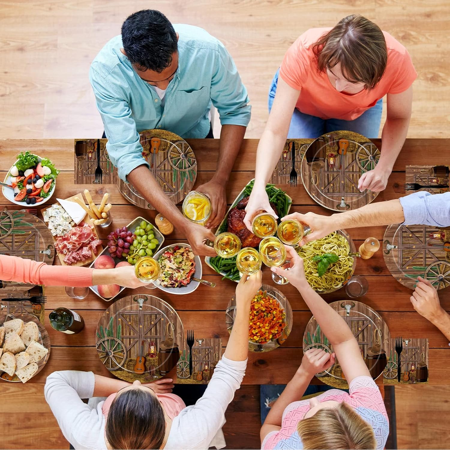- Complete Western Party Set: Our western cowboy party tableware set includes everything you need for a party of 24 guests - 24 dinner plates (9''), 24 dessert plates (7''), 24 napkins (13''), and 24 forks (6.5''). Perfect for hosting your western-themed party with ease!